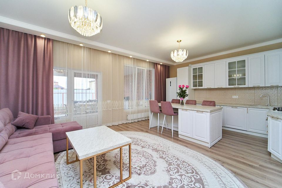 Продается дом в Новой Адыгее, рядом с ТЦ Мега, ТЦ Леруа Мерлен, до центра Краснодара 10 минут на машине. В доме центральный газ, центральная вода, два септика. Перед домом двор выложен плиткой. На заднем дворе есть место для деревьев или грядок. В доме два этажа. На первом: кухня гостиная с выходом на крытую (уже застеклённую)террасу, одна спальня, санузел, кладовка. На втором этаже: три спальни ( в одной большая гардеробная), санузел. Ремонт закончили в начале июня, установили новую мебель и технику- все остается ( кроме холодильника и  стиральной машинки). Ремонт делали для себя, на материалах не экономили. Все сделано очень качественно.