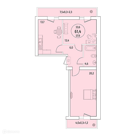 Общая площадь 61 м2