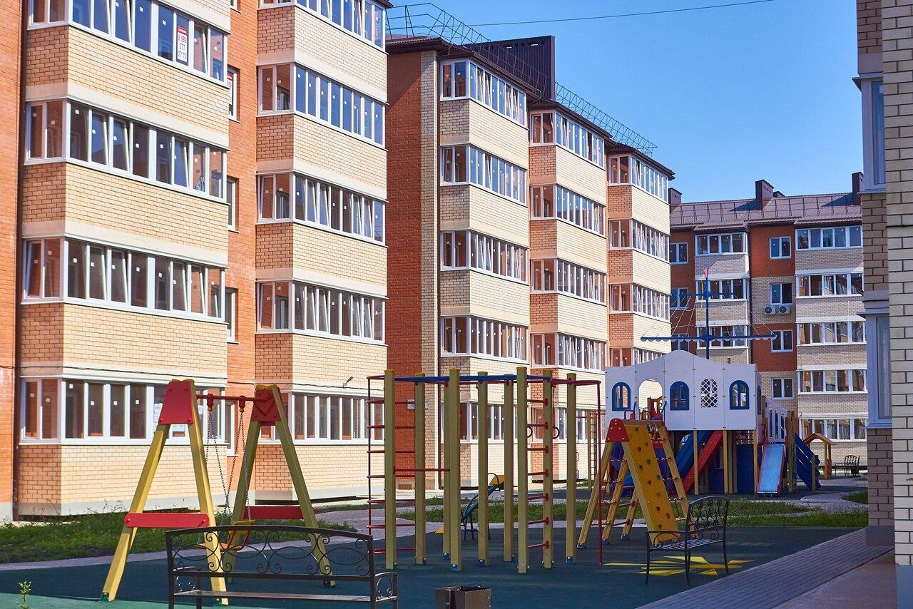 Придомовая территория благоустроена. Есть игровые и спортивные площадки для ваших детей, прогулочные зелёные зоны, парковка. Рядом садик и школа, рынок, ТЦ "Мега", гипермаркеты "Леруа Мерлен", "Ашан". В 10-15 минутах центр города.