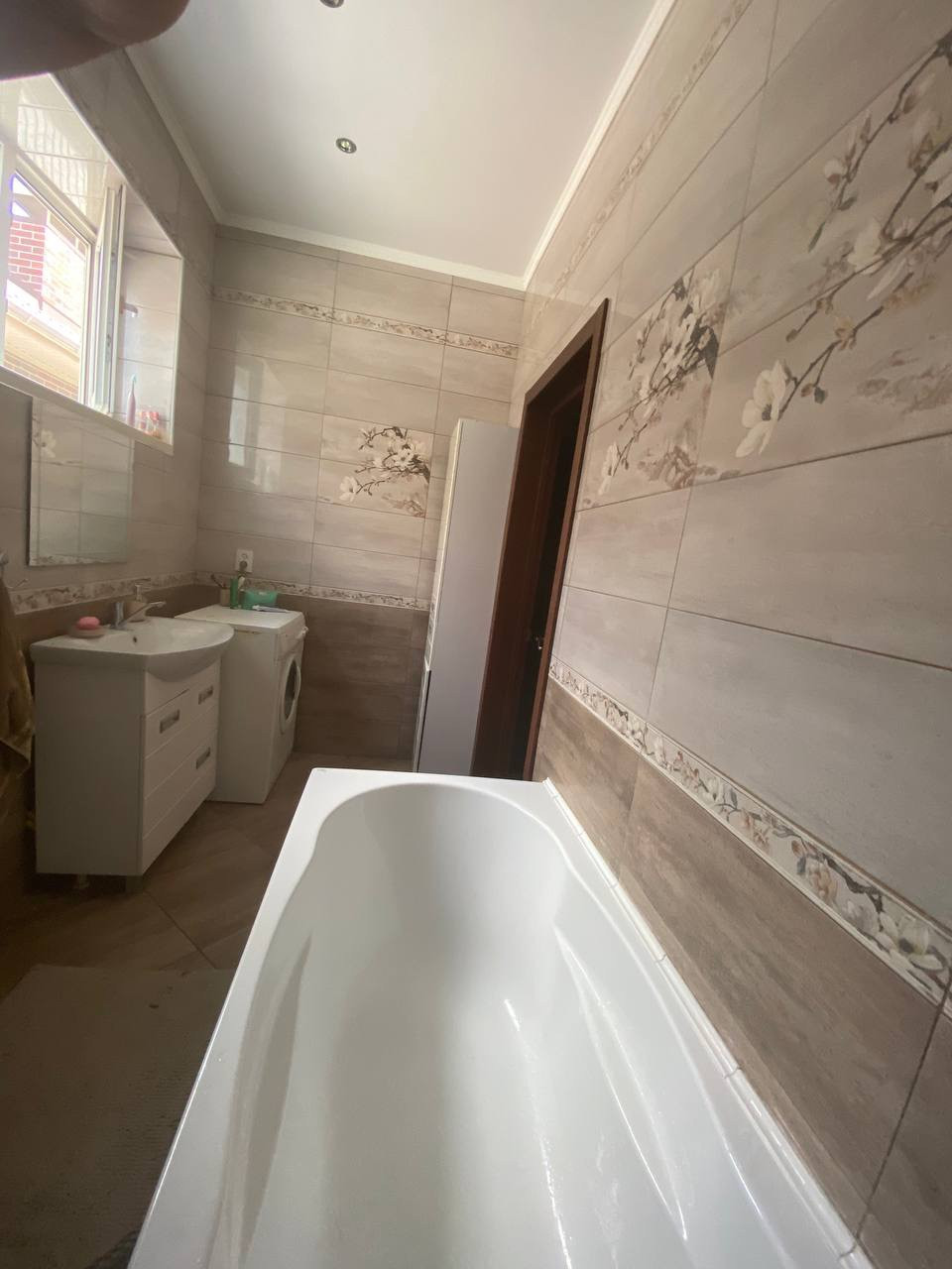 Современный ремонт проведён в 2016 году: полы - ламинат, плитка; потолки натяжные, шторы под заказ. Санузел - ванна, раковина, унитаз, новая керамическая плитка на стенах и полу. Была заменена крыша, построен навес, вырыт новый септик, сделана цементная стяжка во дворе, построена кирпичная хоз. постройка.