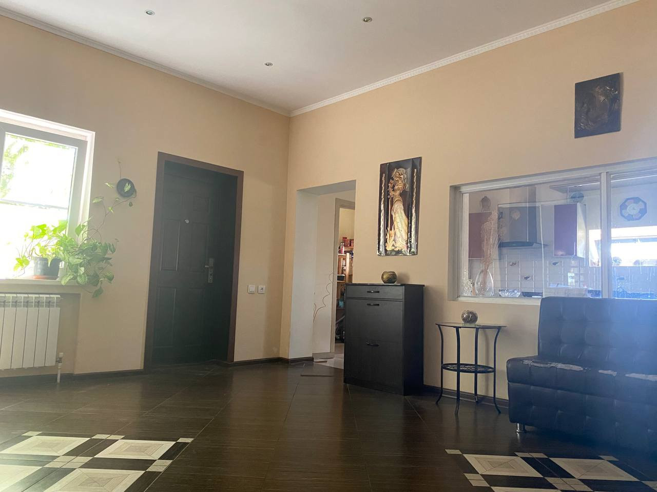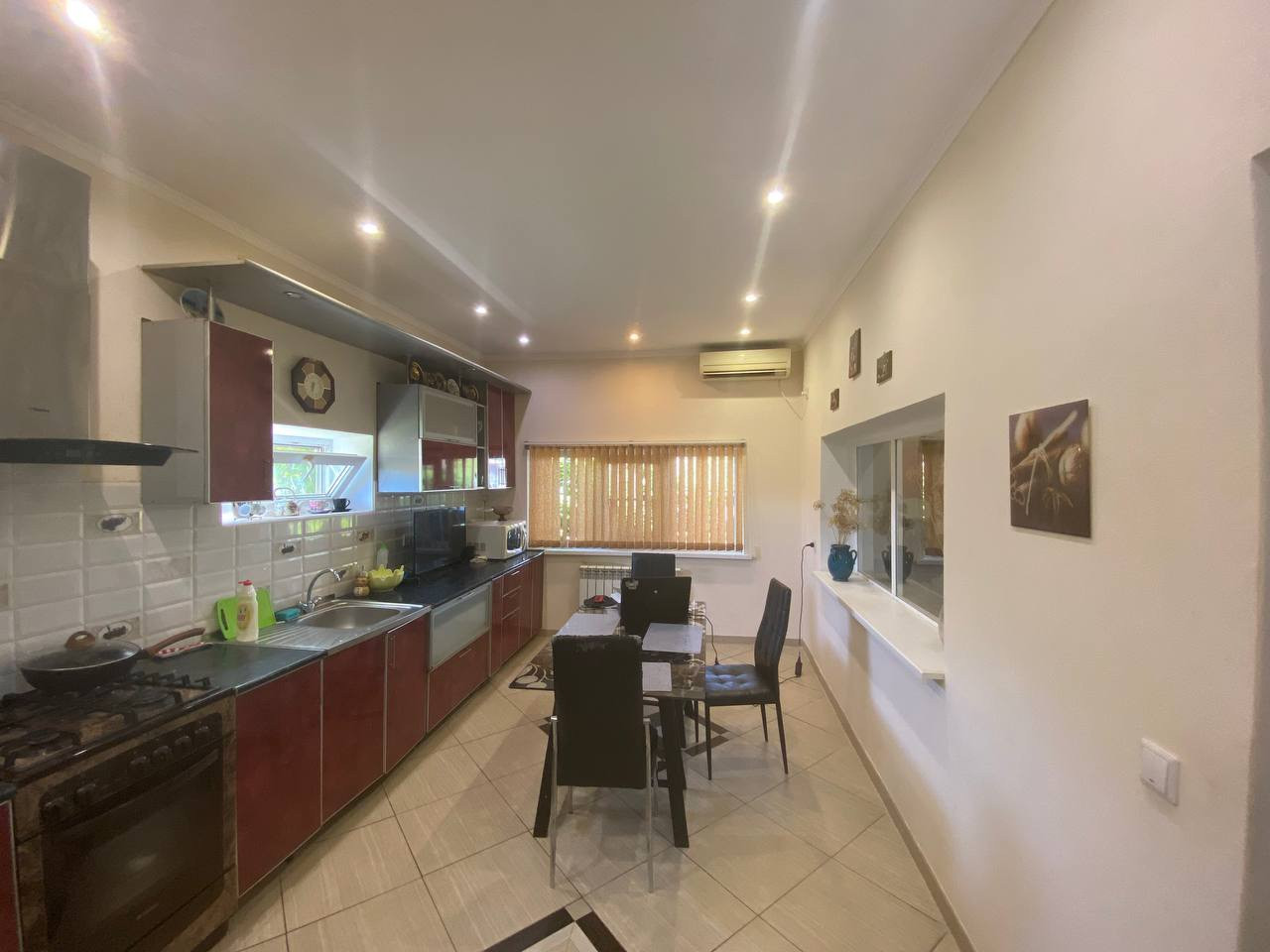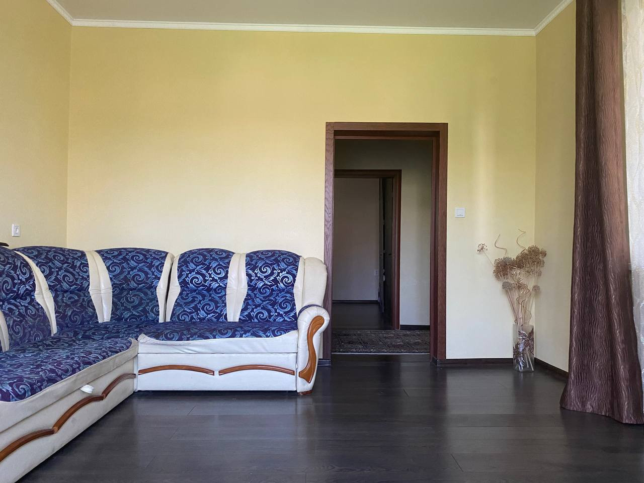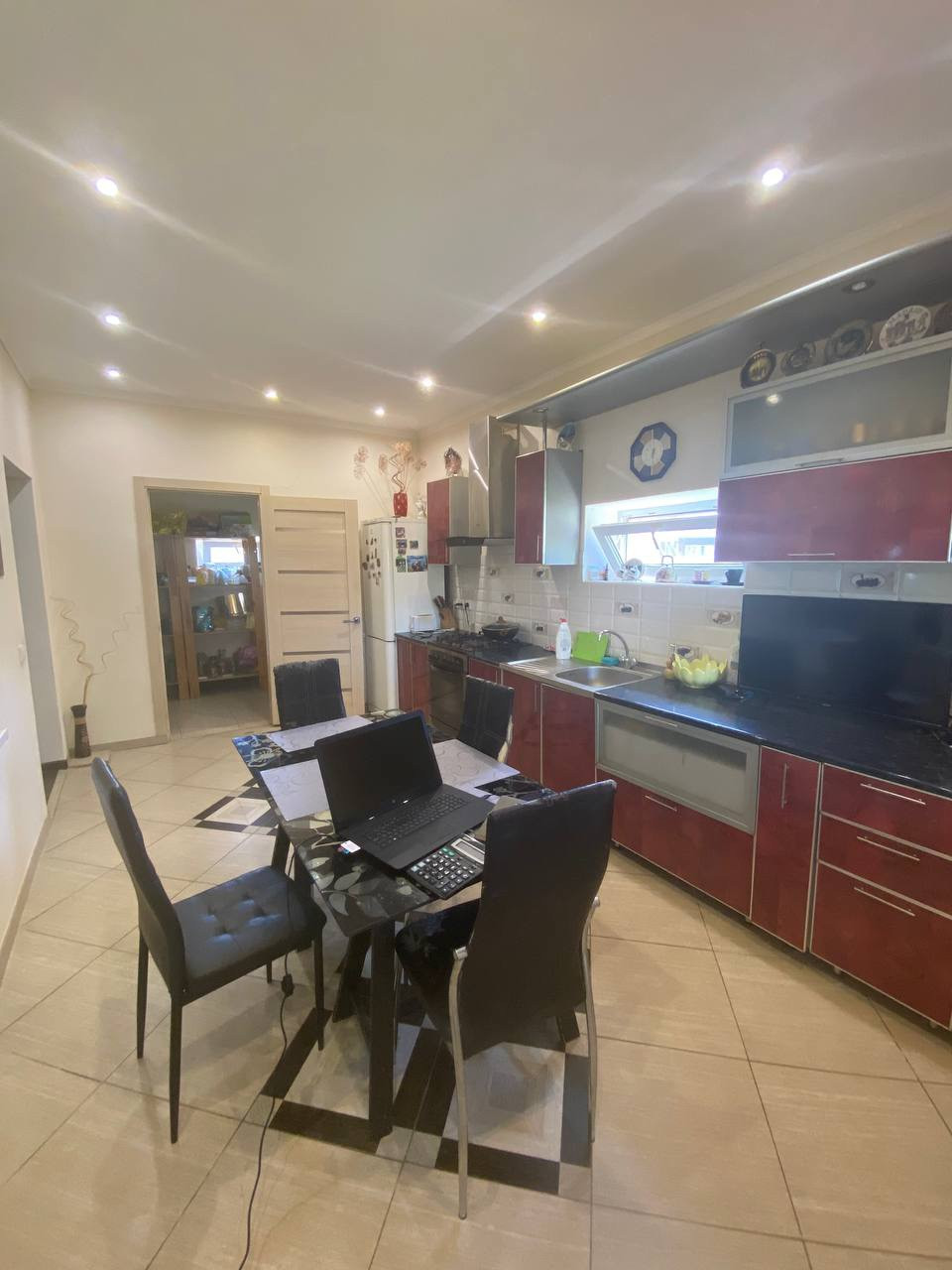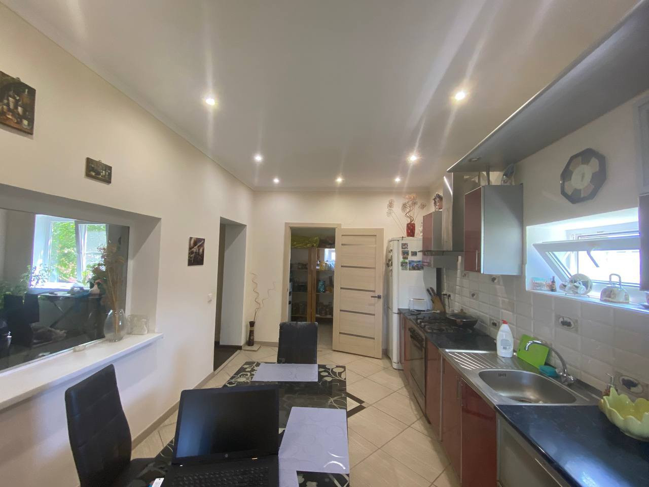 Крыша - металлопрофиль, пластиковые окна, металлические входные двери. 4 комнаты: 19,2 кв м, 13 кв м, 9,9 кв м, 17,2 кв м, большой холл 23,9 кв м, совместный санузел 5,7 кв м, коридор 10,8 кв м, кухня с кладовой 15,8 кв м, кладовая 6 кв м.