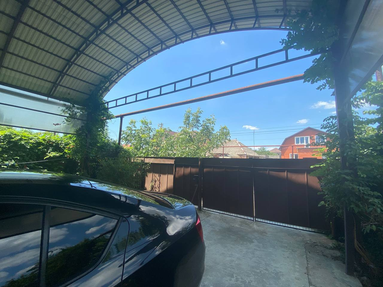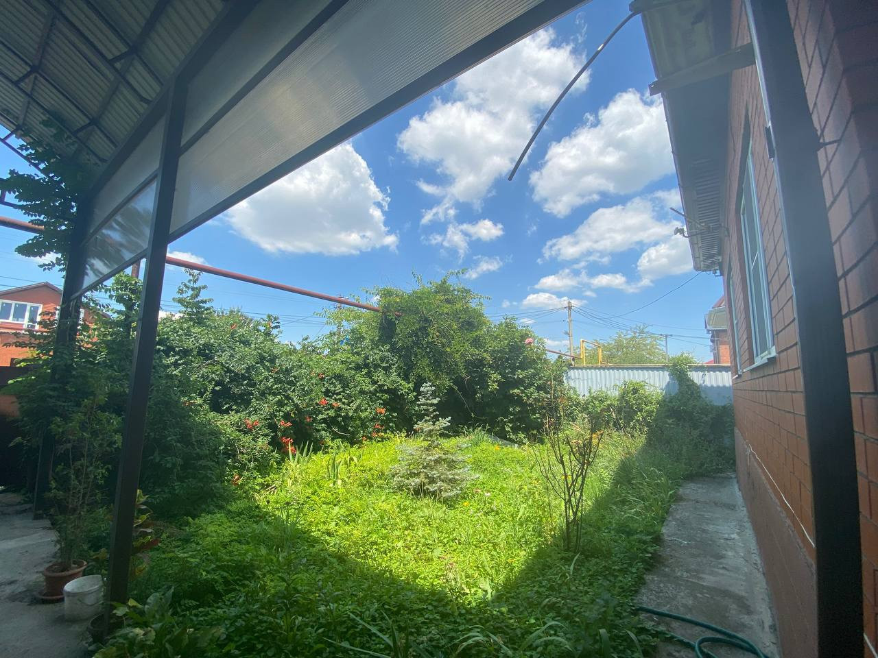 Двор обустроен: капитальный навес полукруглой формы, въезд на 2-3 автомобиля, двор зацементирован.