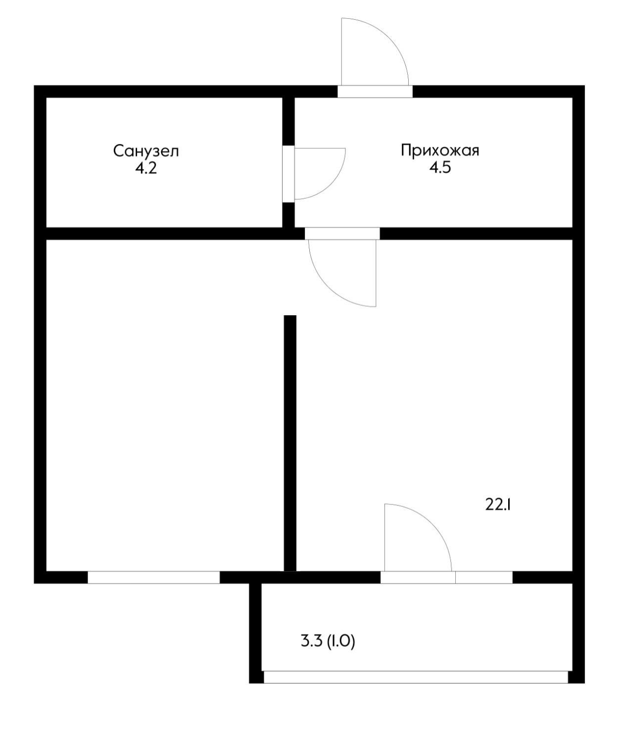 Общая площадь 34.1 м2