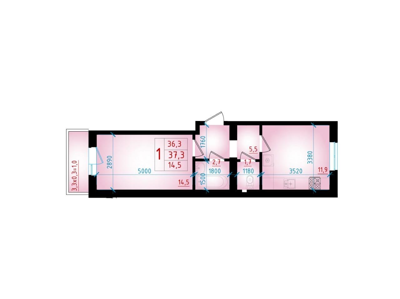 Общая площадь 37.3 м2