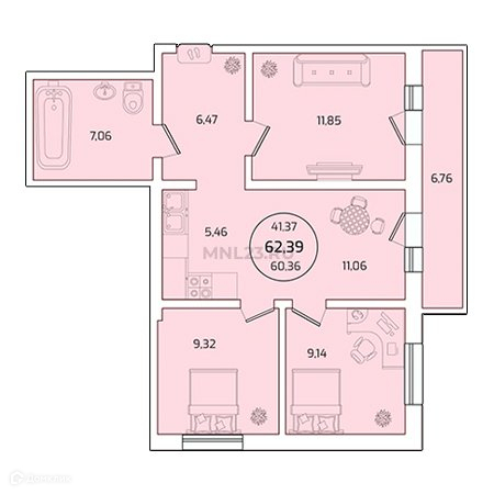 Общая площадь 63.4 м2