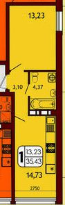 Жилая площадь 13.23 м2