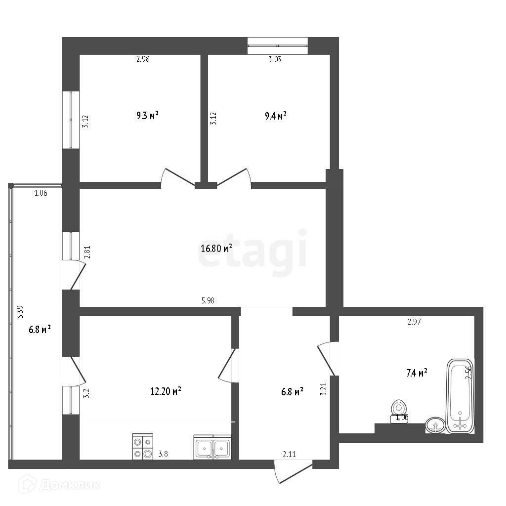 Общая площадь 61.9 м2