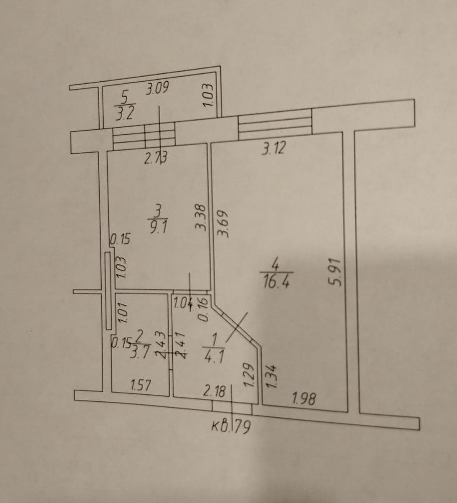 Квартира с изолированной комнатой и кухней, санузел совмещенный. Высота потолков в квартире 2,8 м.