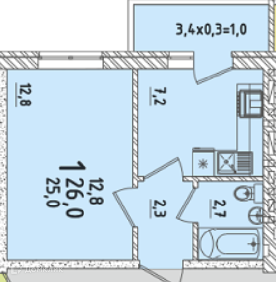 Общая площадь 26 м2