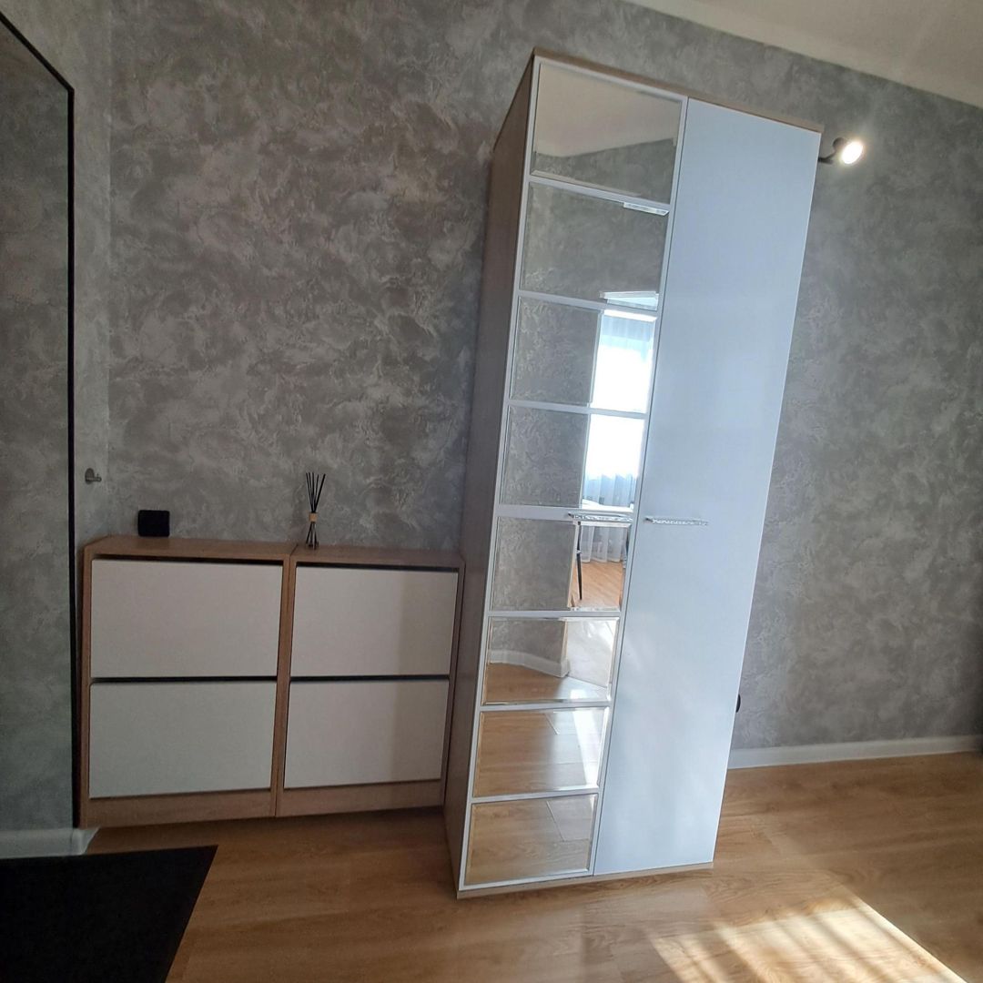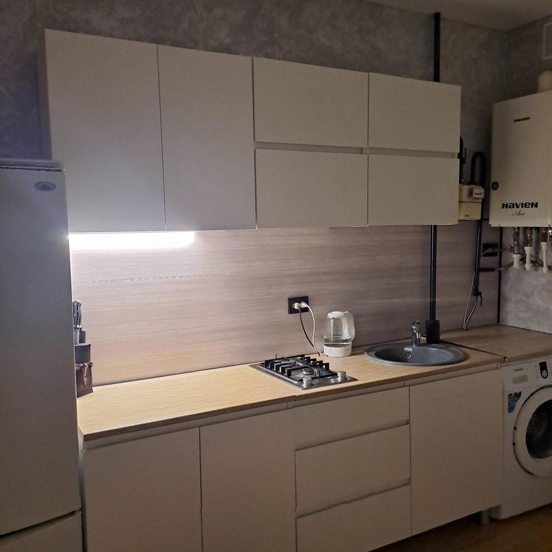 Оставляю новому собственнику: кухонный гарнитур, встроенная газовая поверхность, холодильник, стиральная машинка, стол и 4 стула eames, шкаф в коридоре и в комнате, 2 подвесных обувницы на 8 пар обуви, подвесная тумба с подсветкой в комнате (много цветов, пульт управления), кровать с матрасом 1,6×2 м (внизу место для хранения), сплит, текстиль.