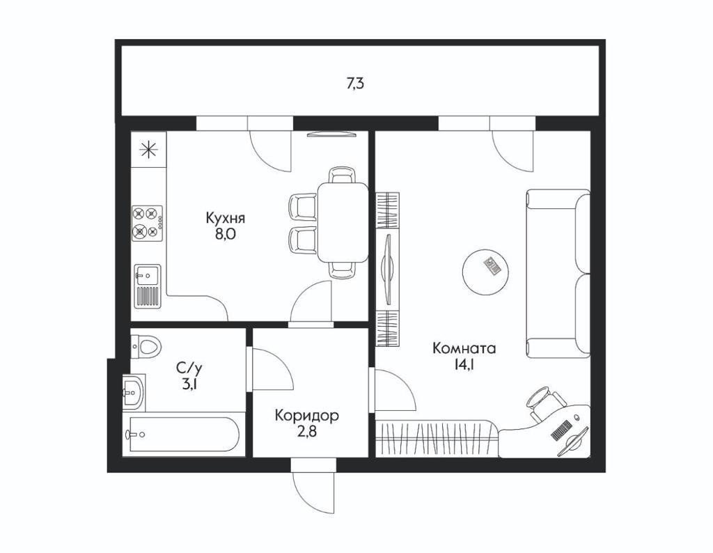Жилая площадь 14.1 м2