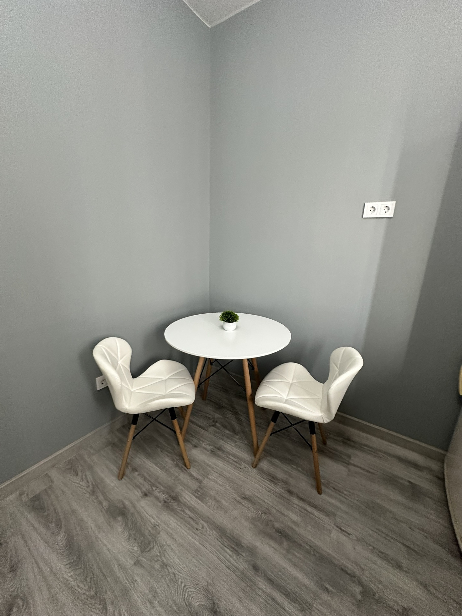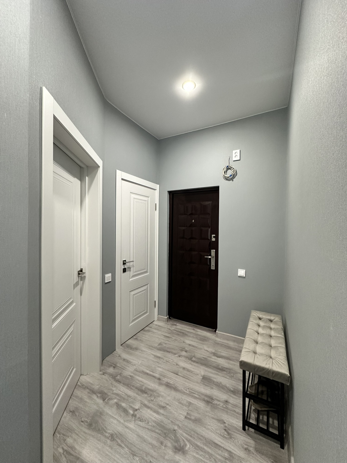В коридоре пуф и выведен провод для интернета .