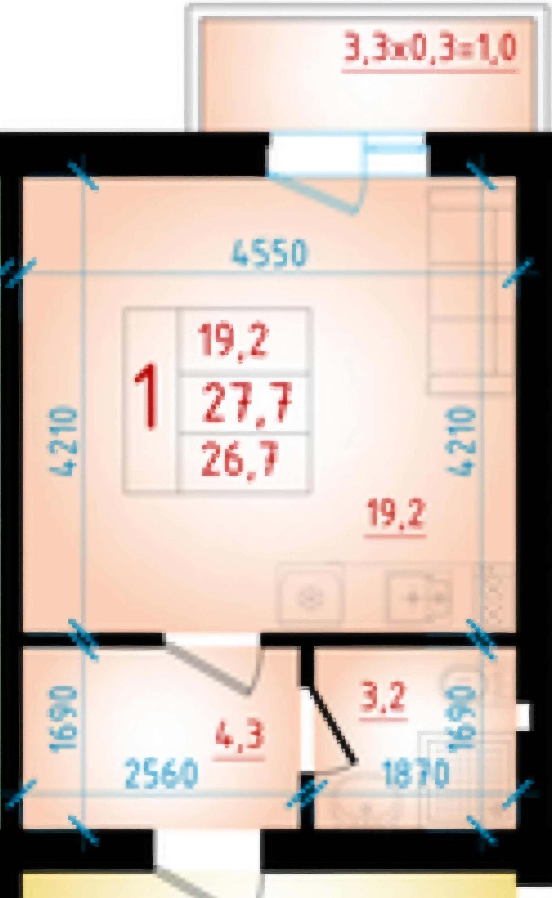 Общая площадь 26.7 м2