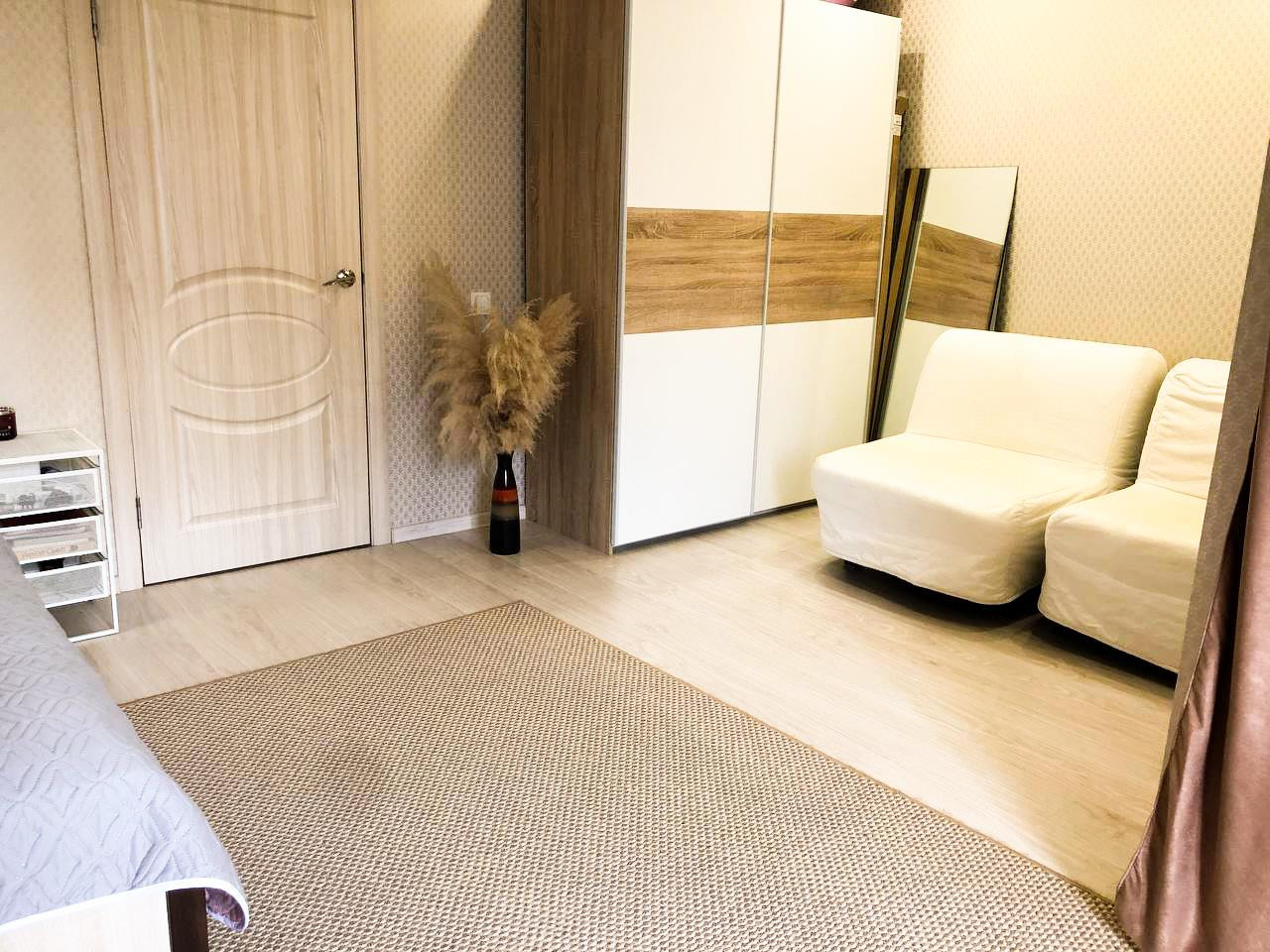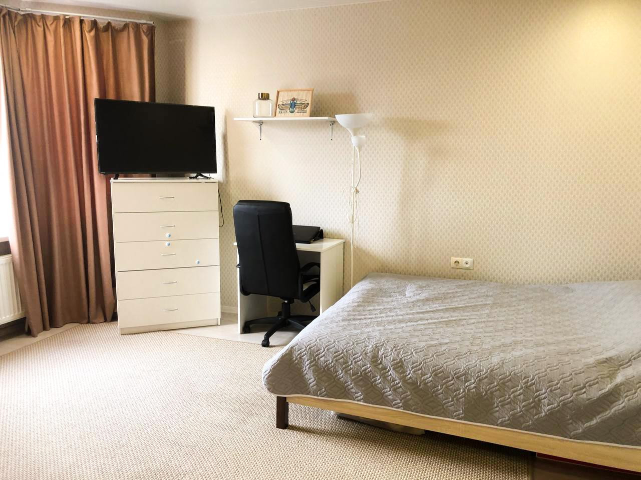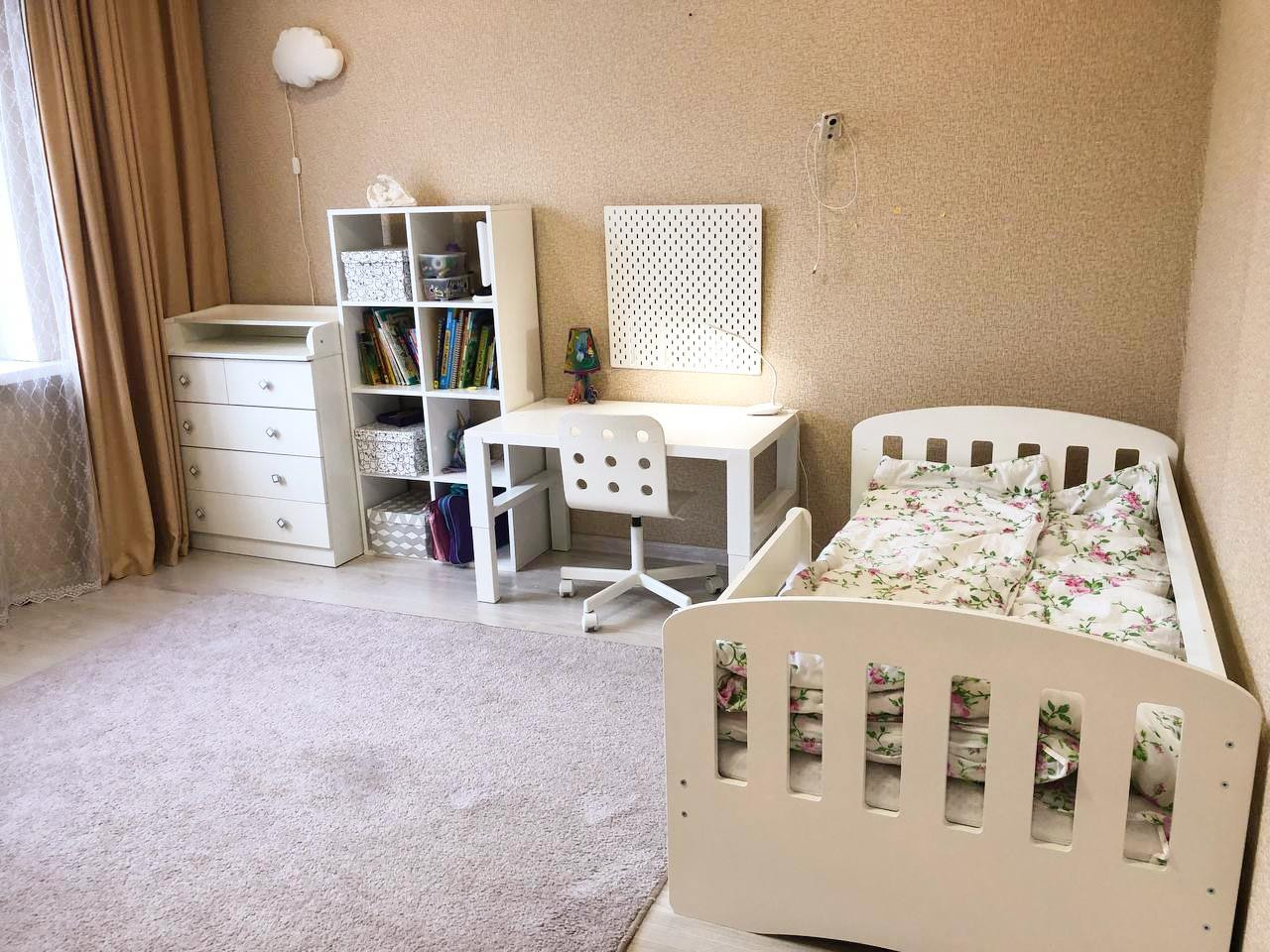 В мастер-спальне есть возможность сделать гардеробную, что никак не повлияет на ощущение света и пространства. Также из этой комнаты есть выход на балкон. Детская комната - большая и светлая. В ней два окна, что позволяет разделить её на две равные комнаты, если в вашей семье более одного ребенка.