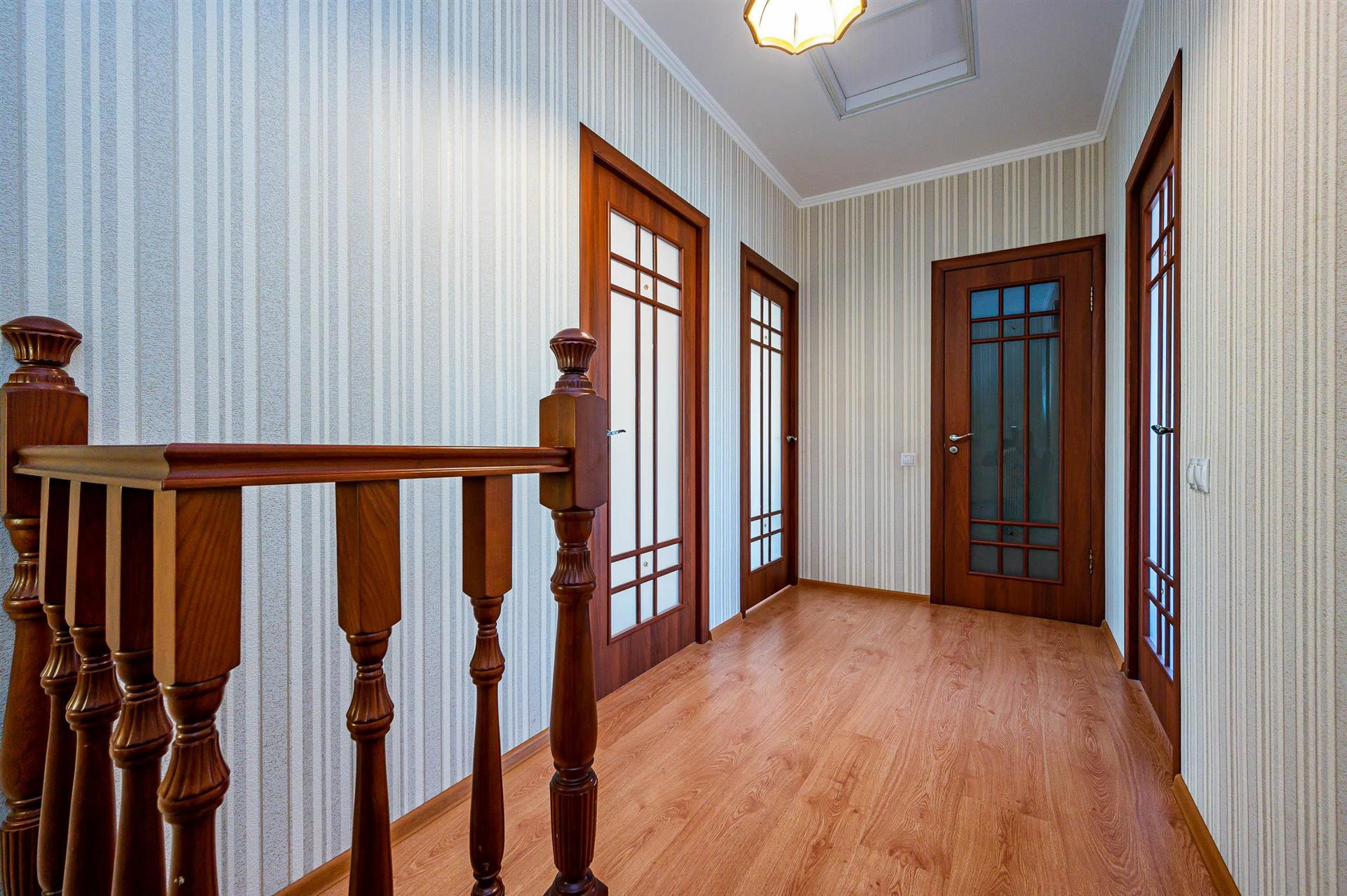 Площадь 134 м2. На первом этаже дома: большая кухня-гостиная 47 м2, где с удовольствием хочется готовить для себя и своей семьи. На втором этаже располагаются три изолированные комнаты, одна из которых имеет гардеробную. На каждом этаже есть санузел.