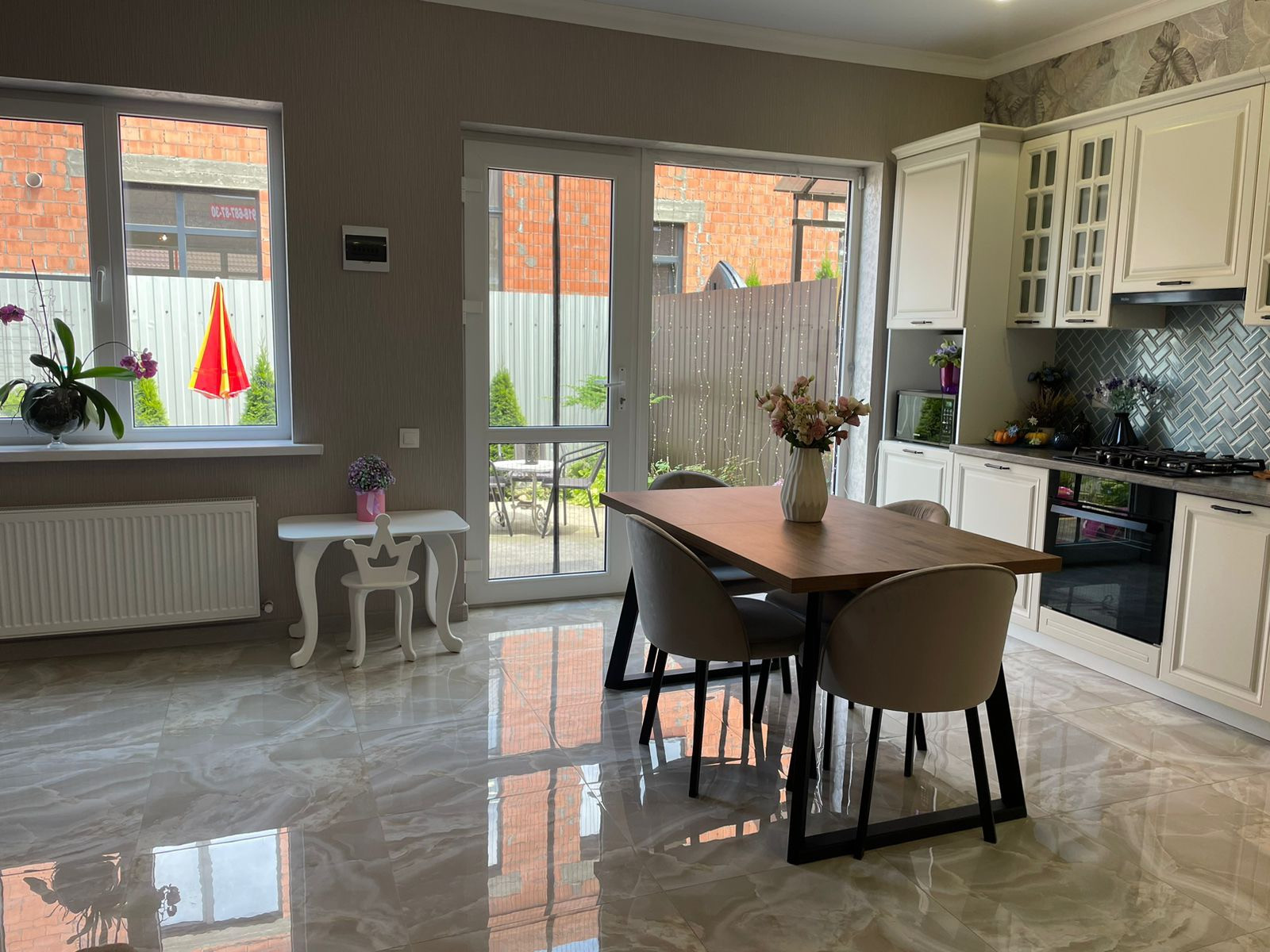 Продам таунхаус с новым ремонтом. В доме 3 спальни, 2 санузла, кухня-столовая и гостиная.