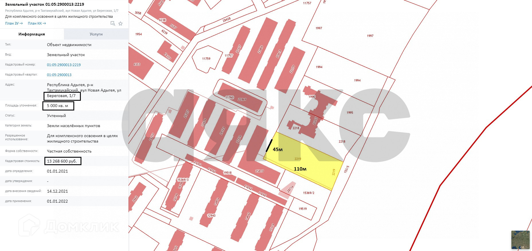 Стоимость недвижимости: