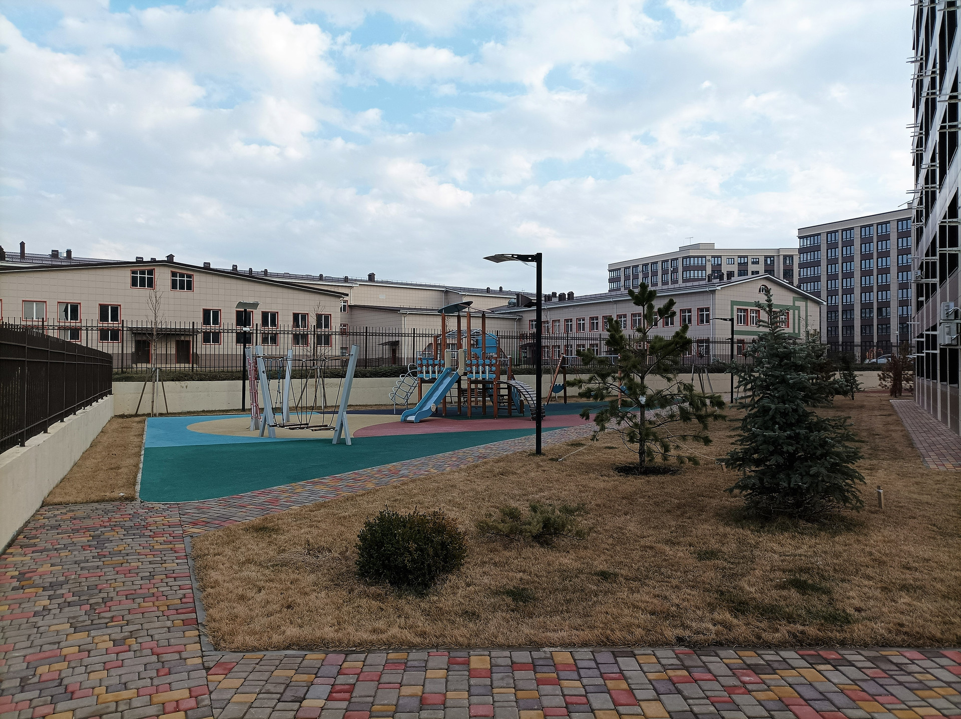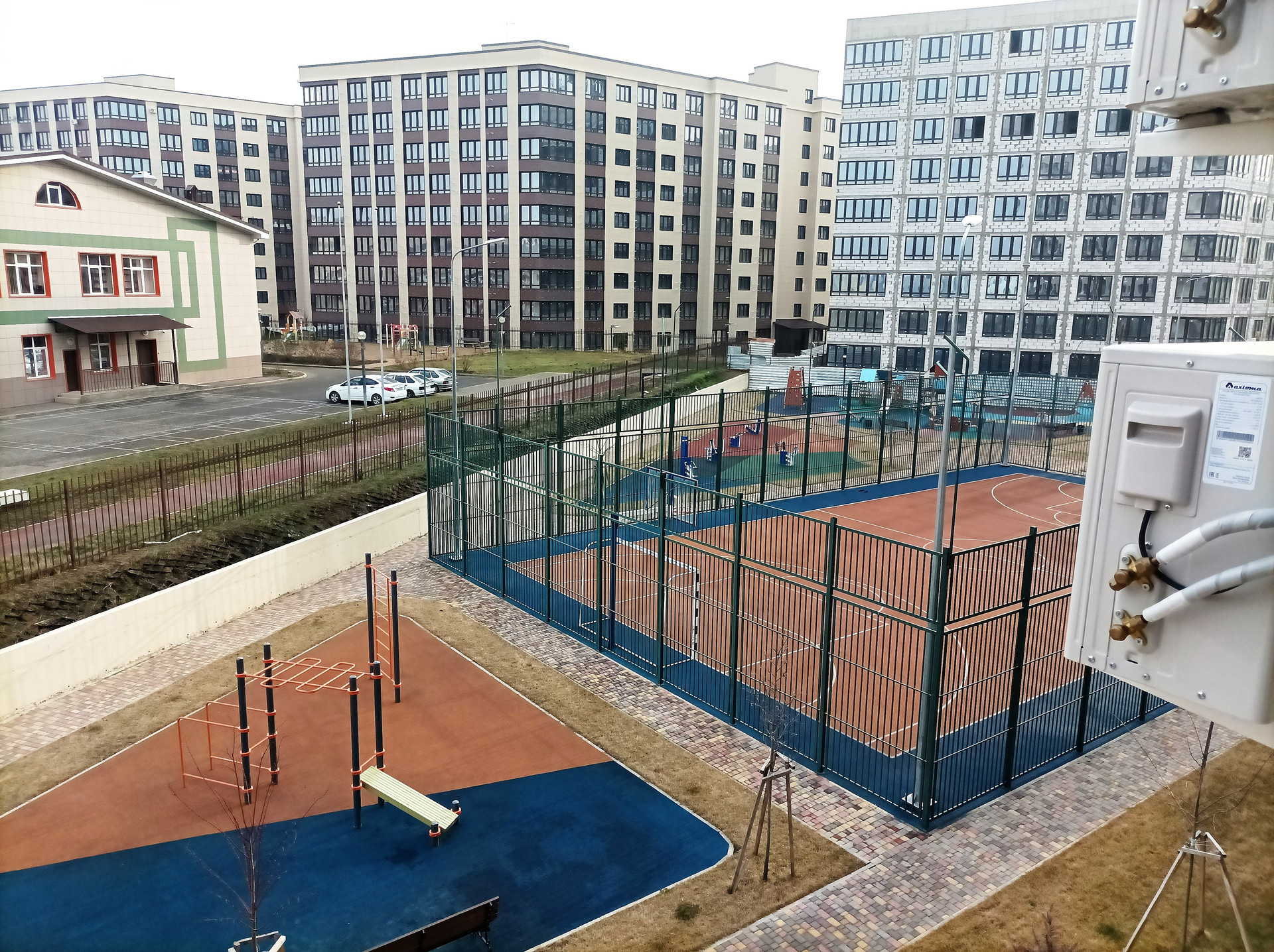 Просторная парковка во дворе.