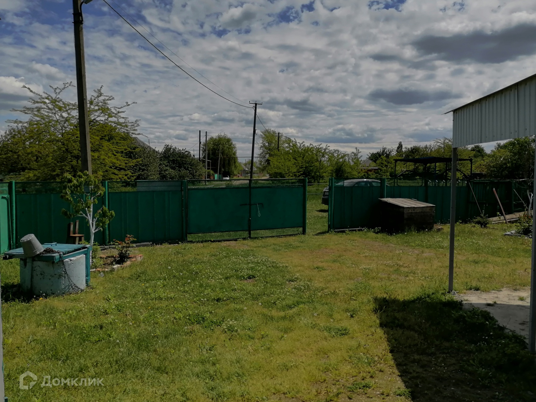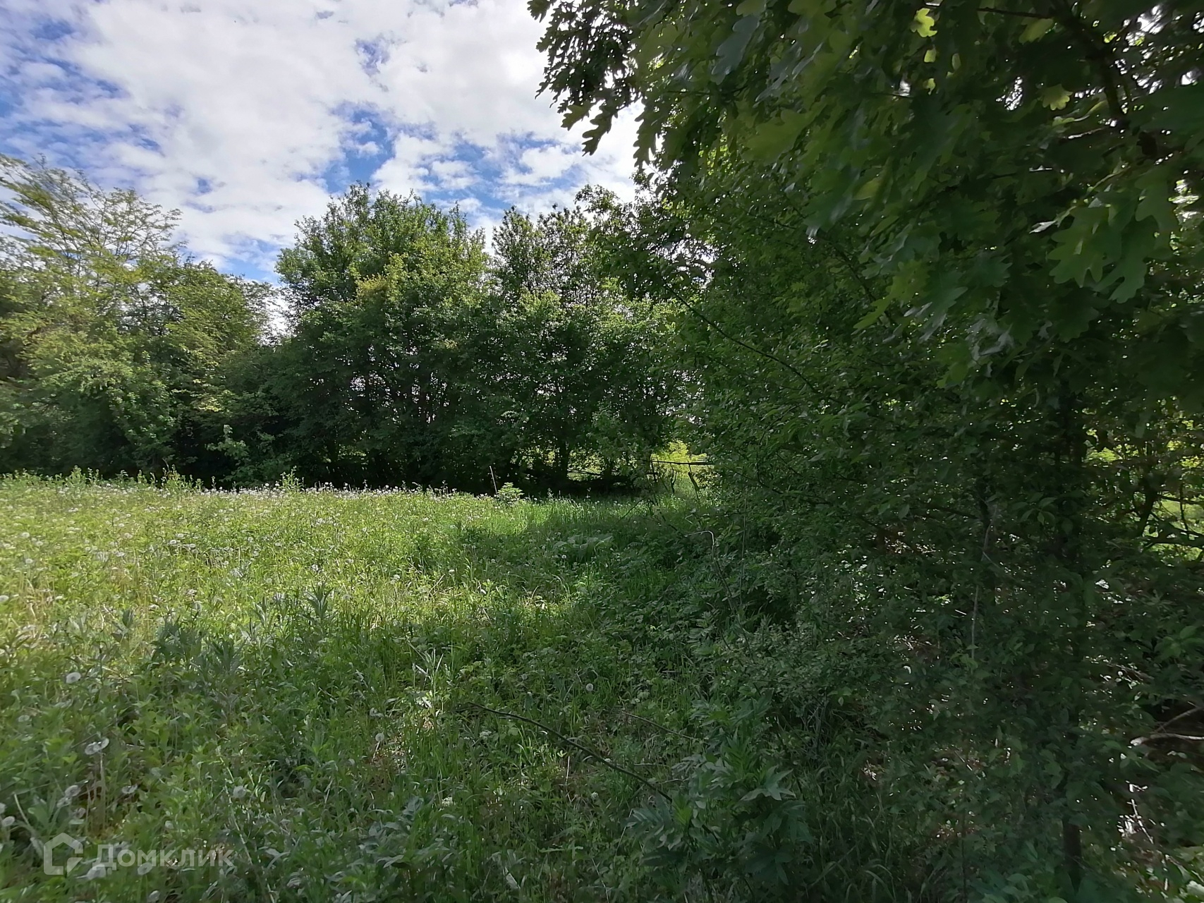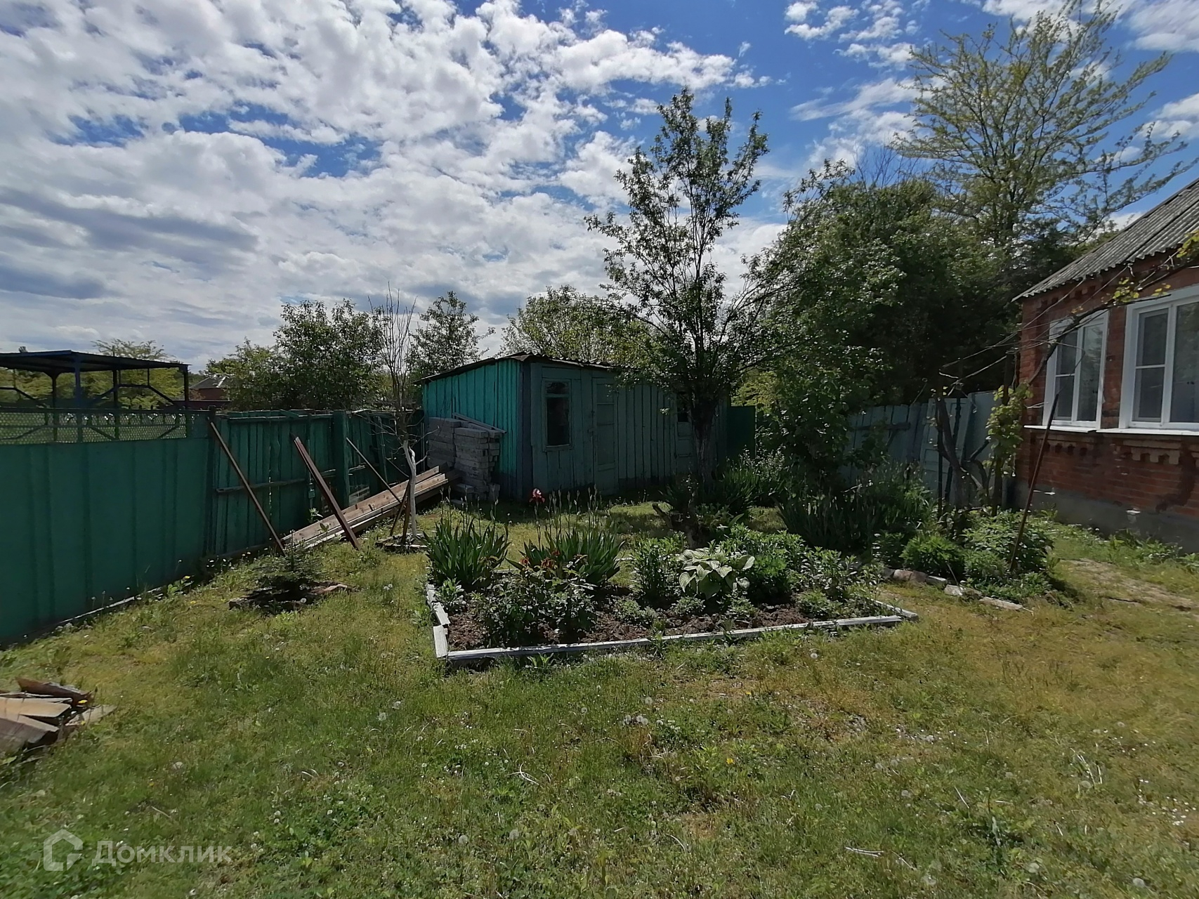 На участке растут плодовые деревья, в конце участка растет огромный дуб (свои дубовые веники)