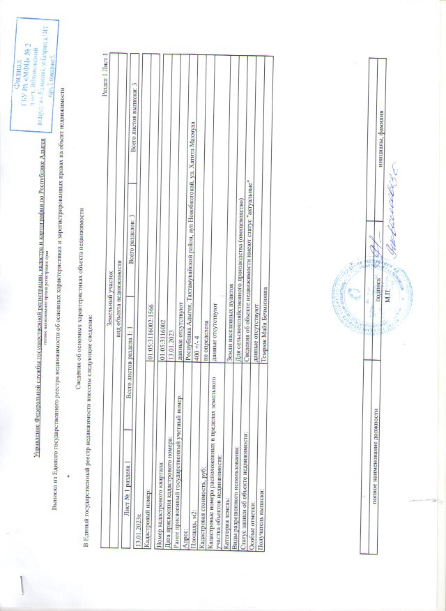 Кадастровый номер: 01:05:3116002:1566