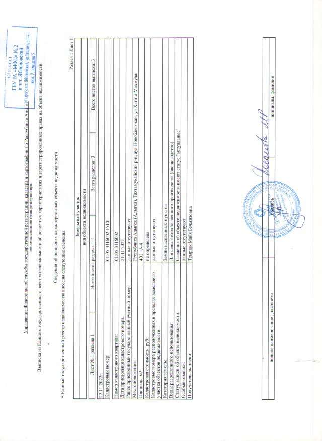 Кадастровый номер: 01:05:3116002:1510