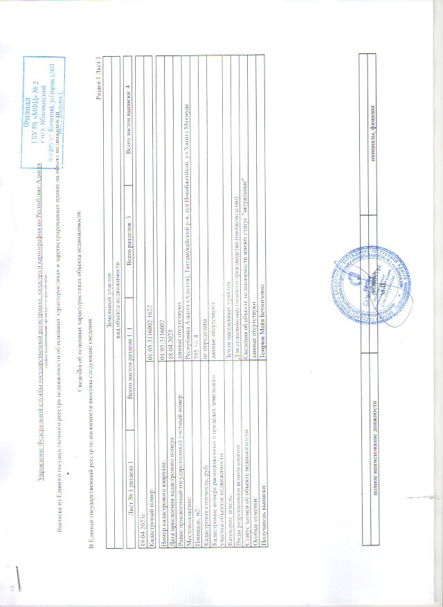 Кадастровый номер: 01:05:3116002:1622