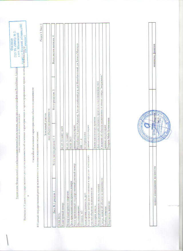 Кадастровый номер: 01:05:3116002:1619
