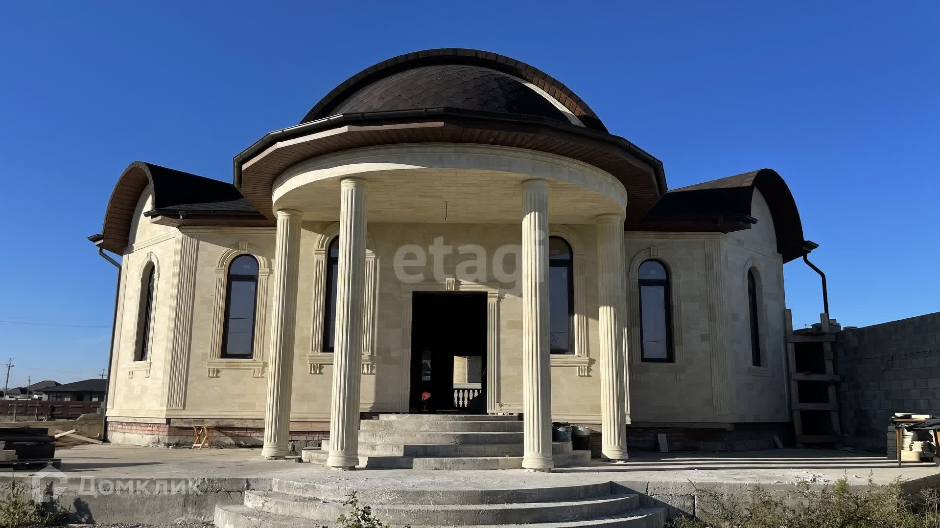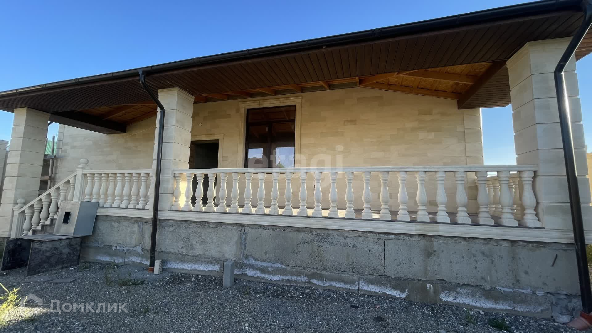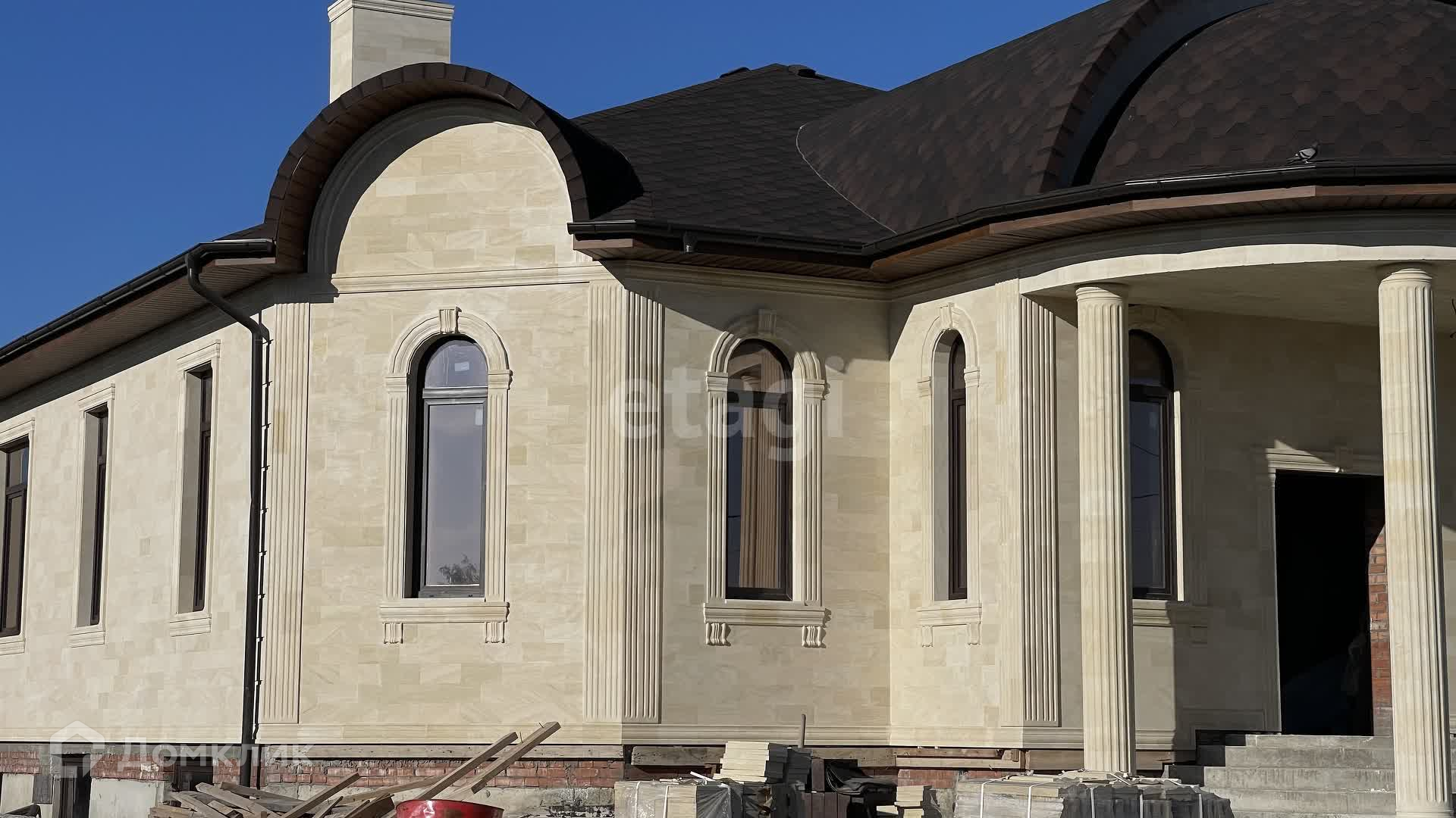 Дом в черновой отделке, построен из качественных материалов, стены толстые кирпичные, облицован дагестанским камнем, крыша - мягкая кровля, окна пластиковые.