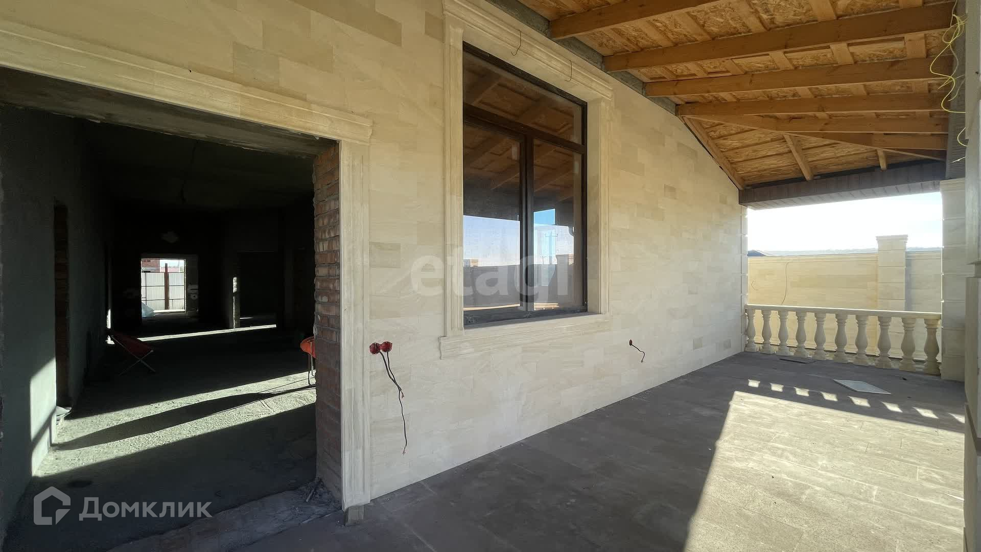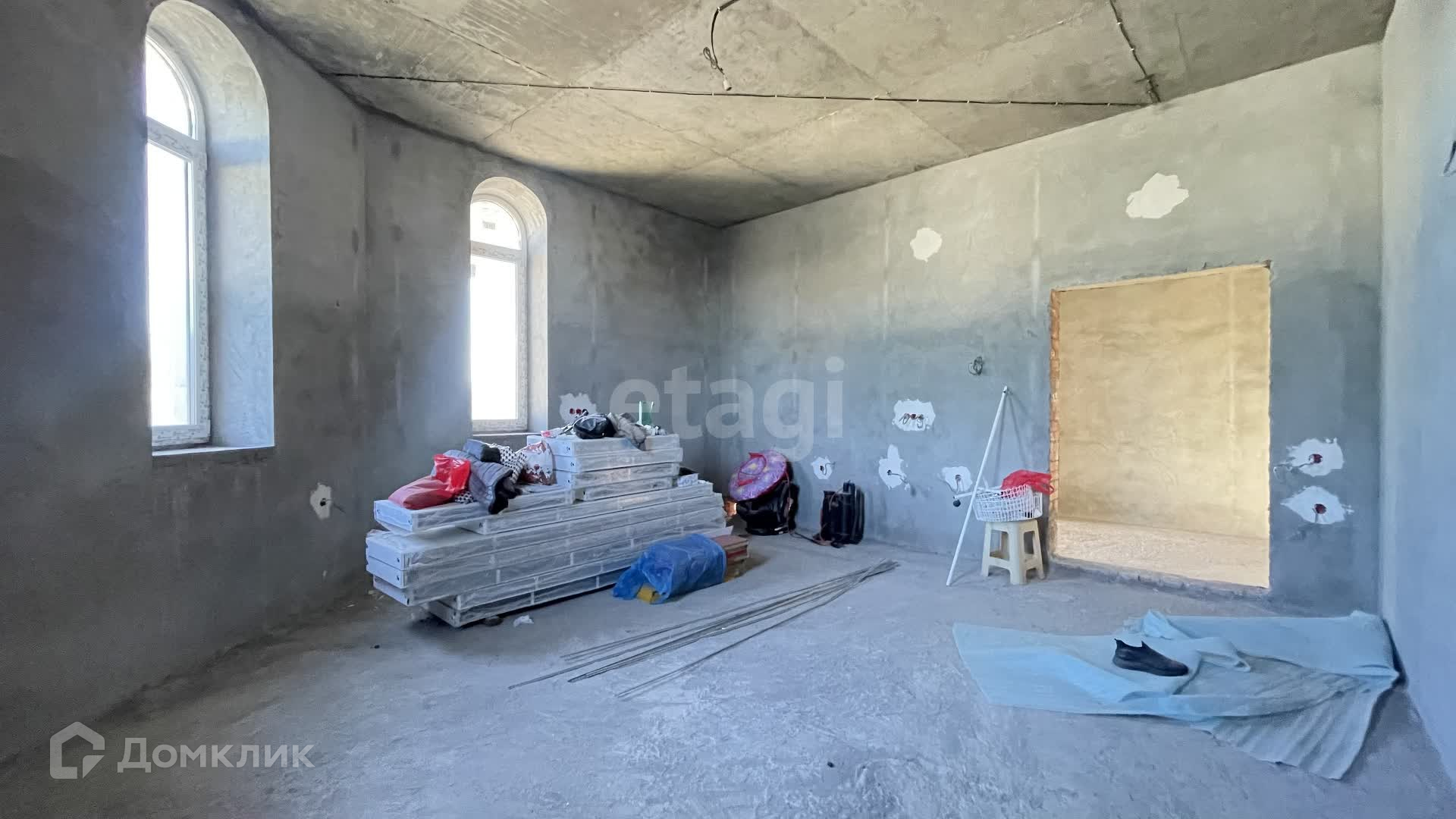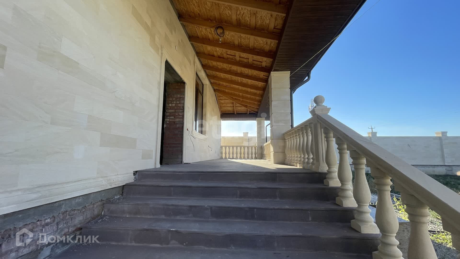 Дом в черновой отделке, построен из качественных материалов, стены толстые кирпичные, облицован дагестанским камнем, крыша - мягкая кровля, окна пластиковые.