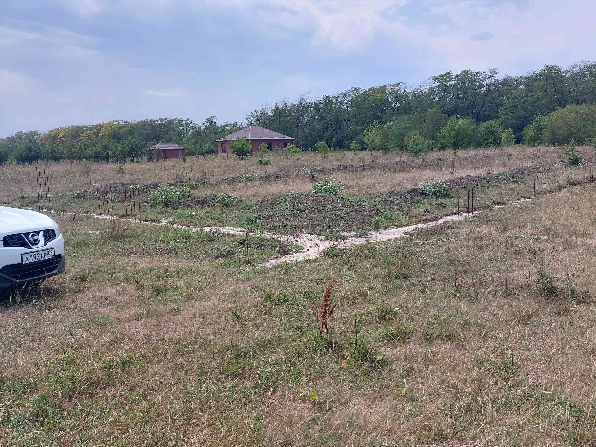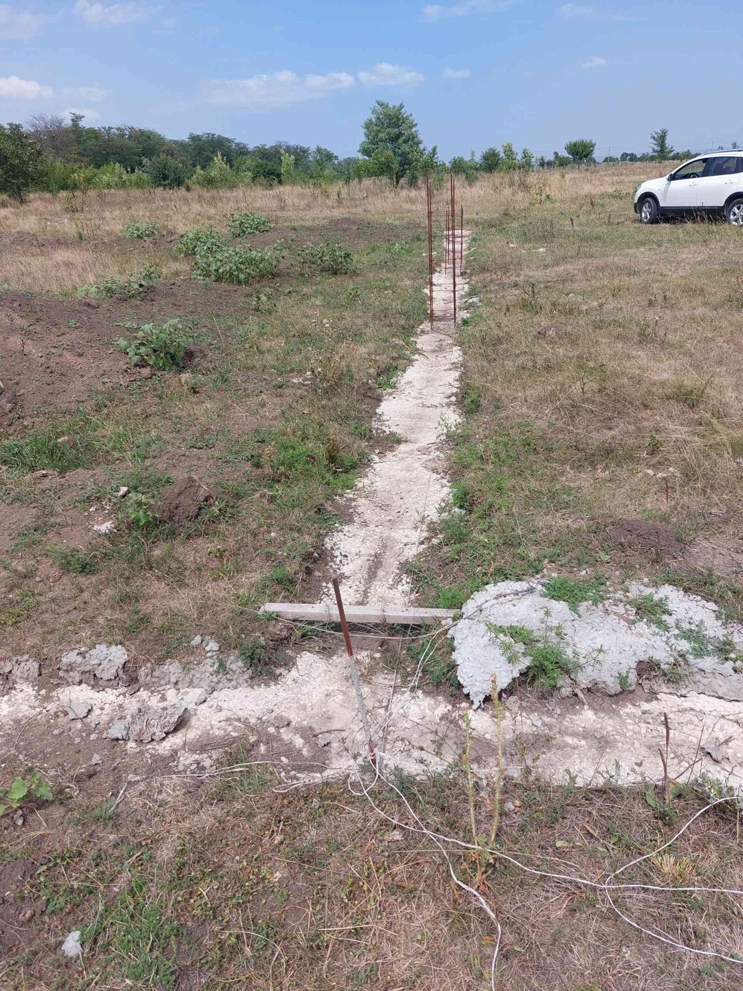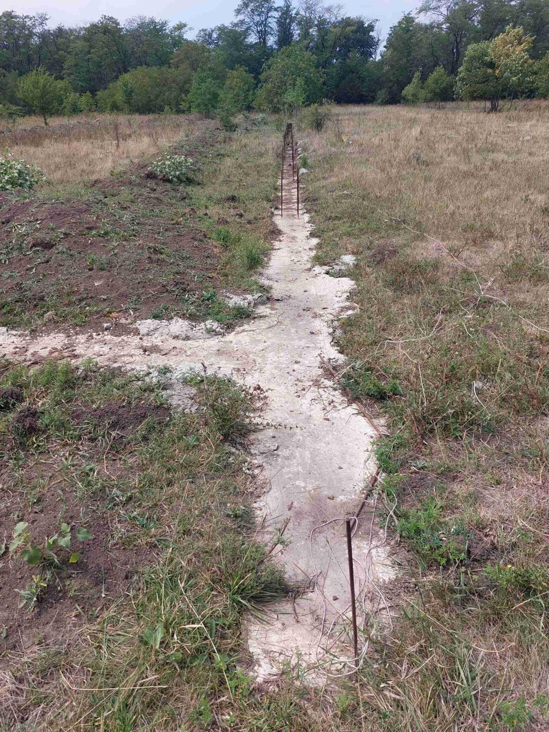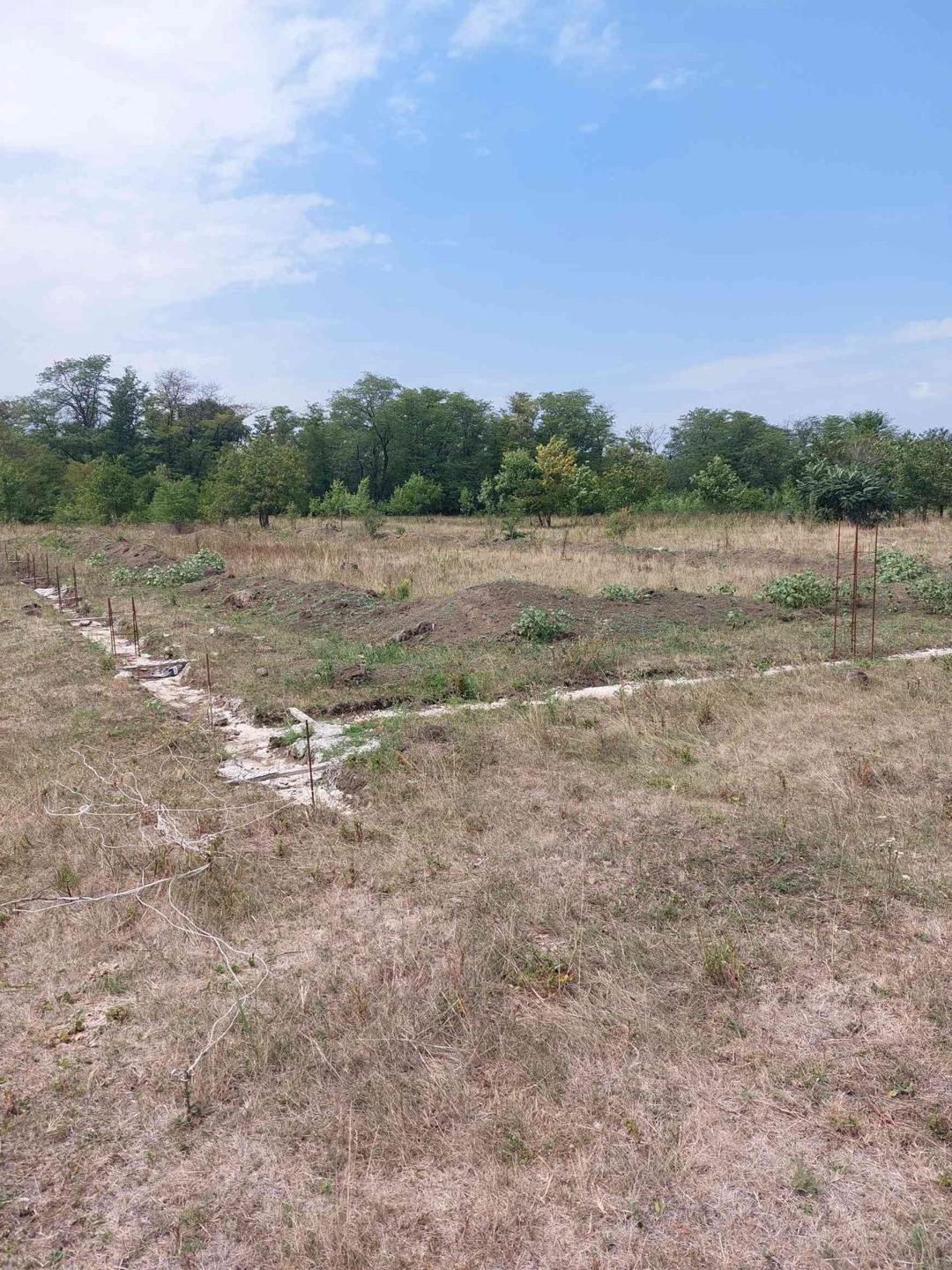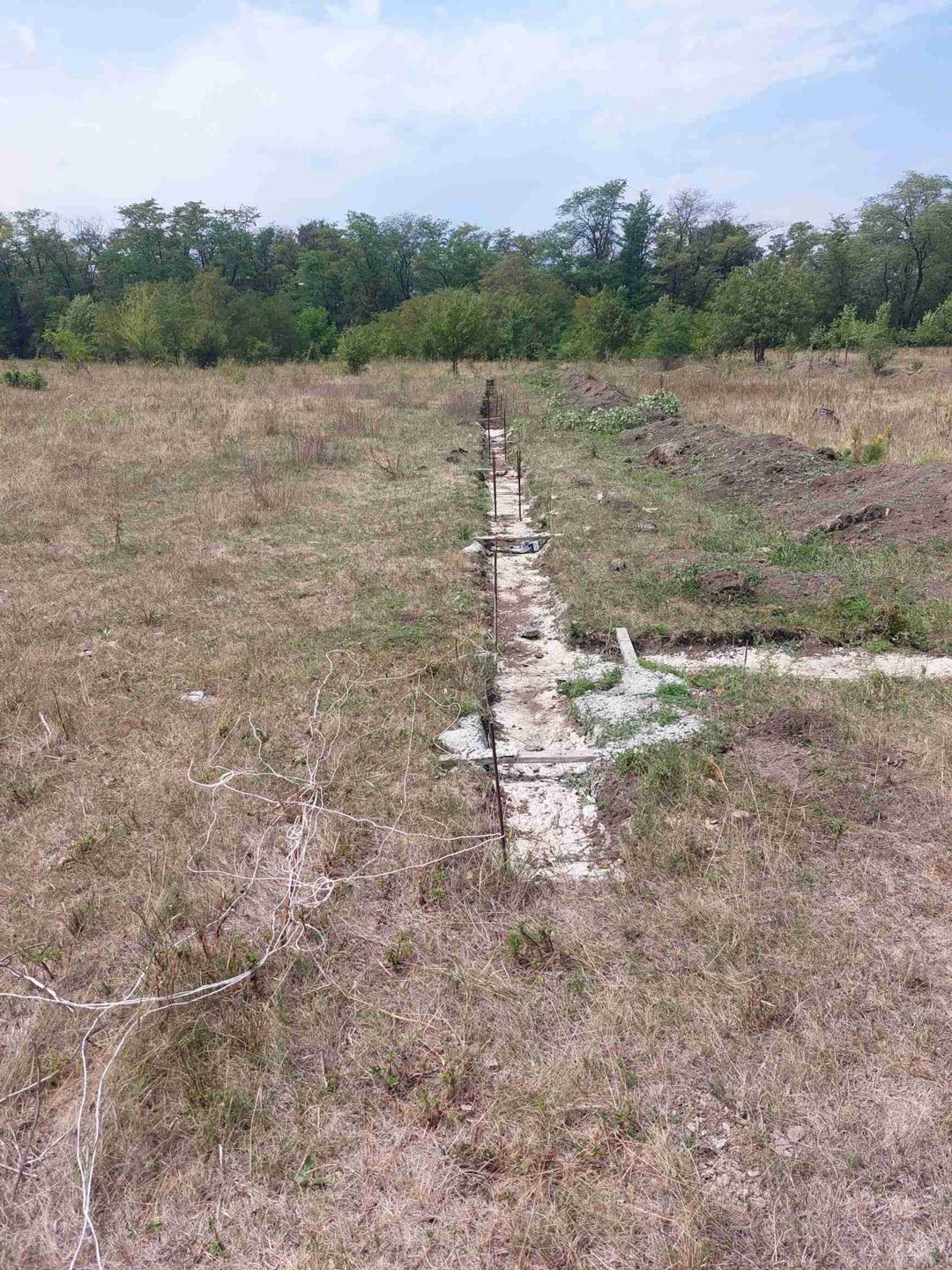 Участок отмежёван. По всему периметру участка залит цементный бетон армированный глубиной 50-70 см. Рядом (100 метров) проходит по улице электричество, вода, газ. По улице уже живут. Рассматривается ипотека