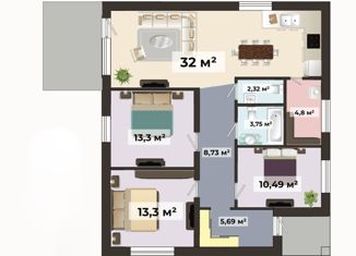 Общая площадь: 105 м2