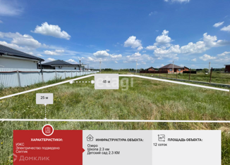 Продается большой земельный участок 12 соток правильной формы в а. Старобжегокай. Электричество идет по меже, газ и вода заведены в населенный пунк. Локация активно развивается, заходят застройщики со строительством коттеднжых поселков, в связи с чем земля быстро растет в цене. Рядом школа, детский сад, магазины. 30 минут до центра Краснодара. Локаци... |