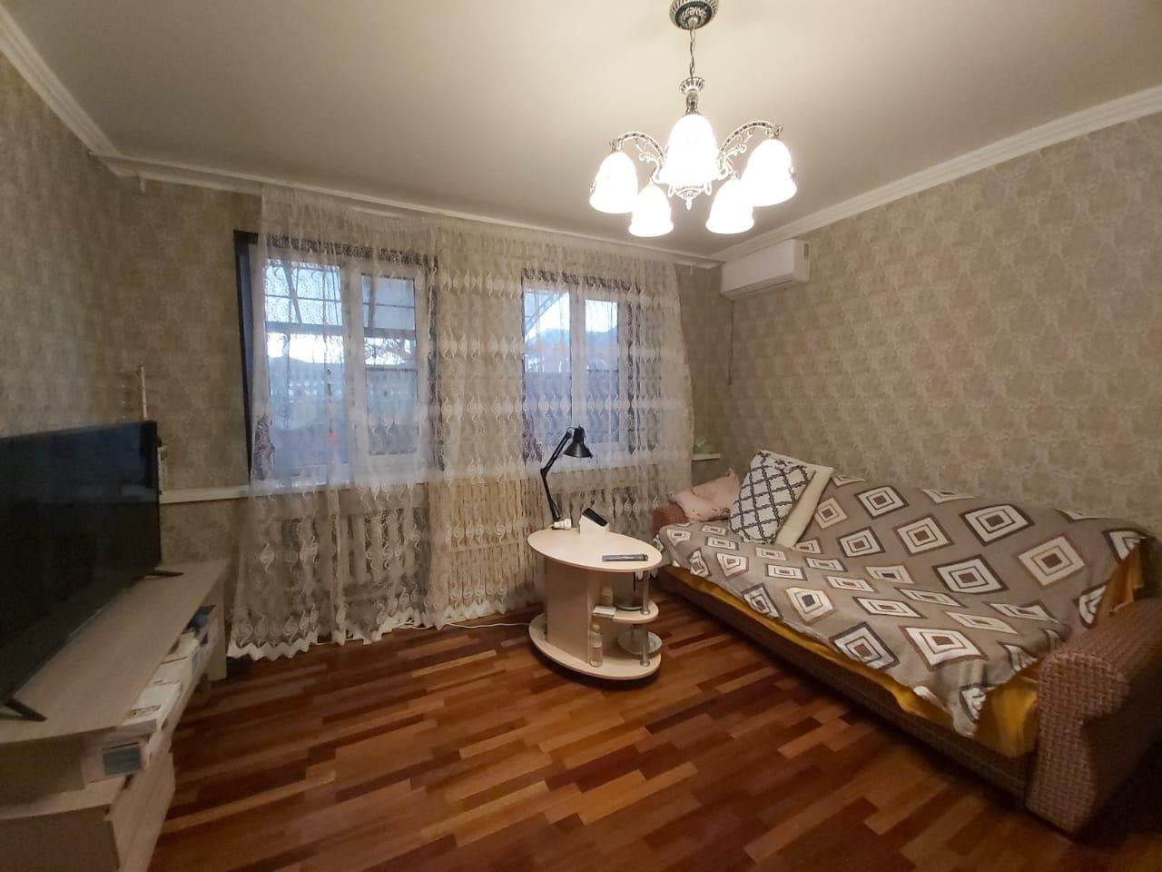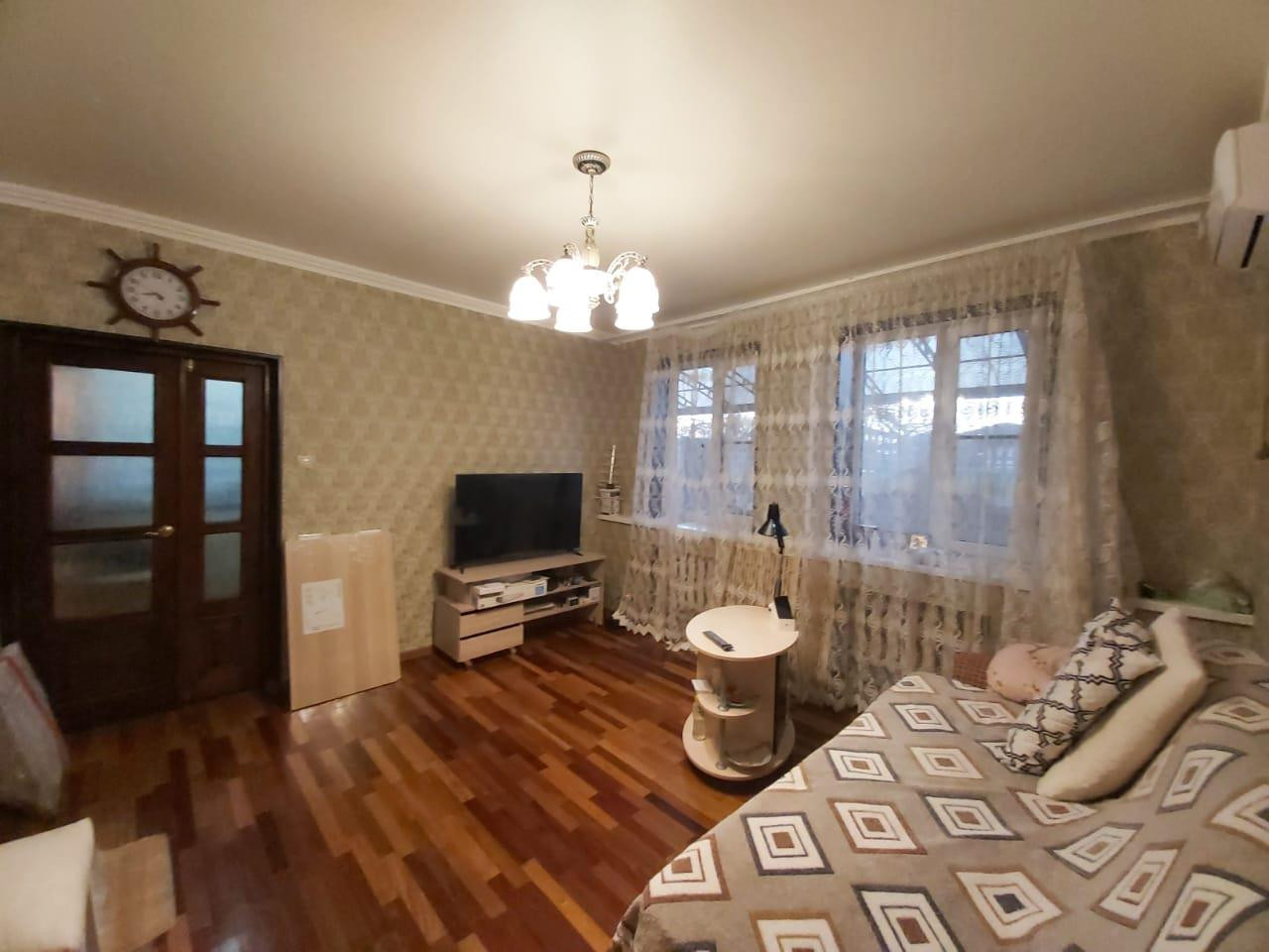 Дом кирпичный, а это значит - зимой тепло, летом прохладно. В доме выполнен новый, качественный ремонт. За счет присоединения столовой и кухни, площадь 80 м2, по документам 51квм. Большой двор с навесом под парко местом на 3 машины. Газ и водоснабжение центральные, септик. В доме три кондиционера. На полу паркет, кафель на кухне и в санузле.