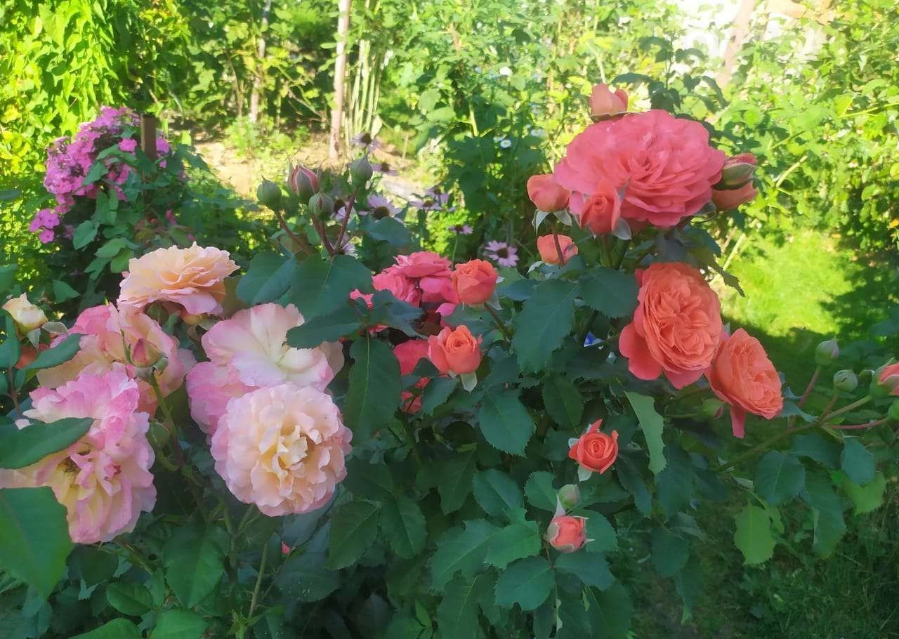 В саду  столько цветов и цветущих кустарников, которые собирали и выращивали много лет.
