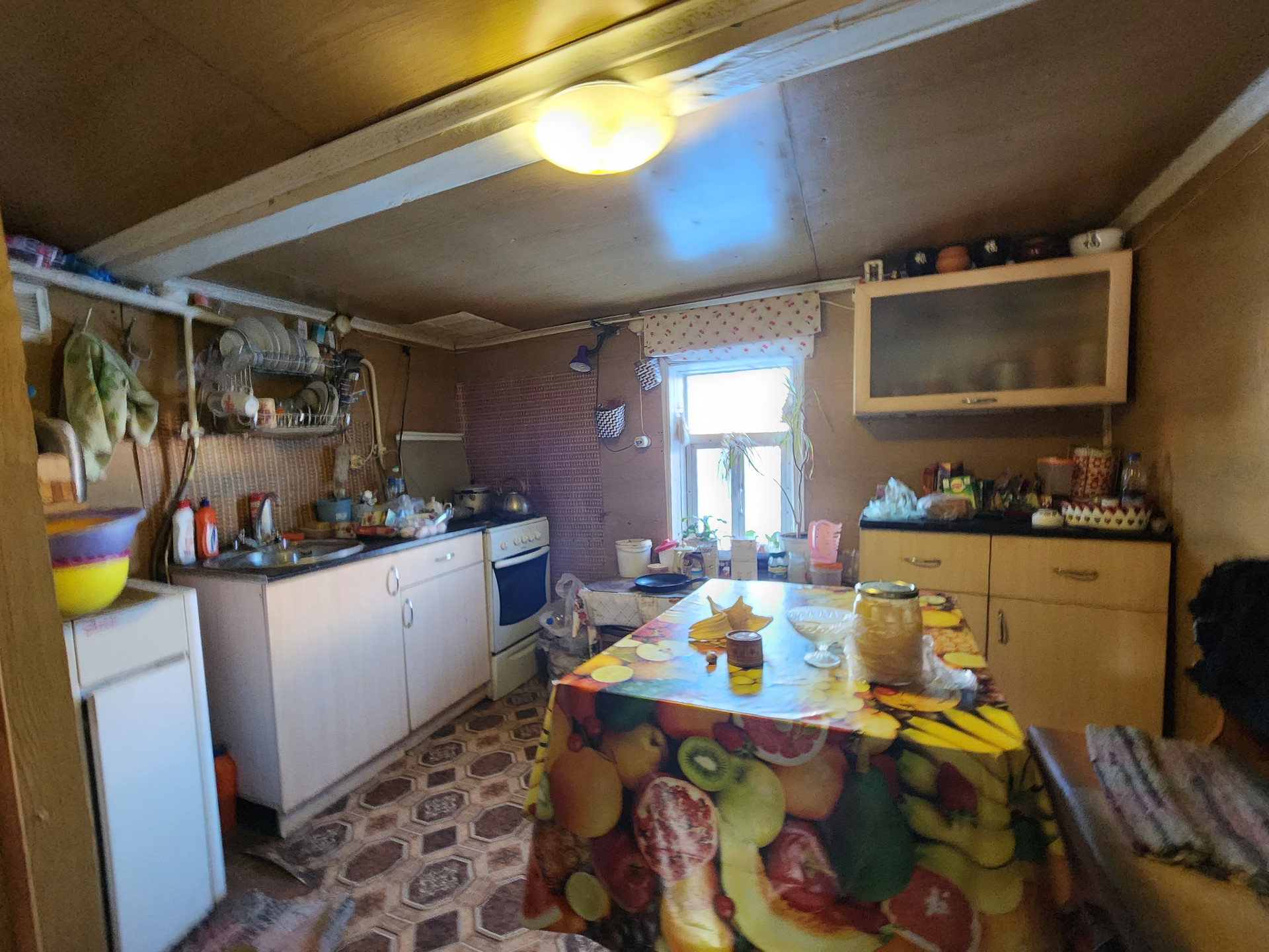 Участок огорожен. Баня на дровах, сарай, зимний погреб, теплица, туалет на улице.