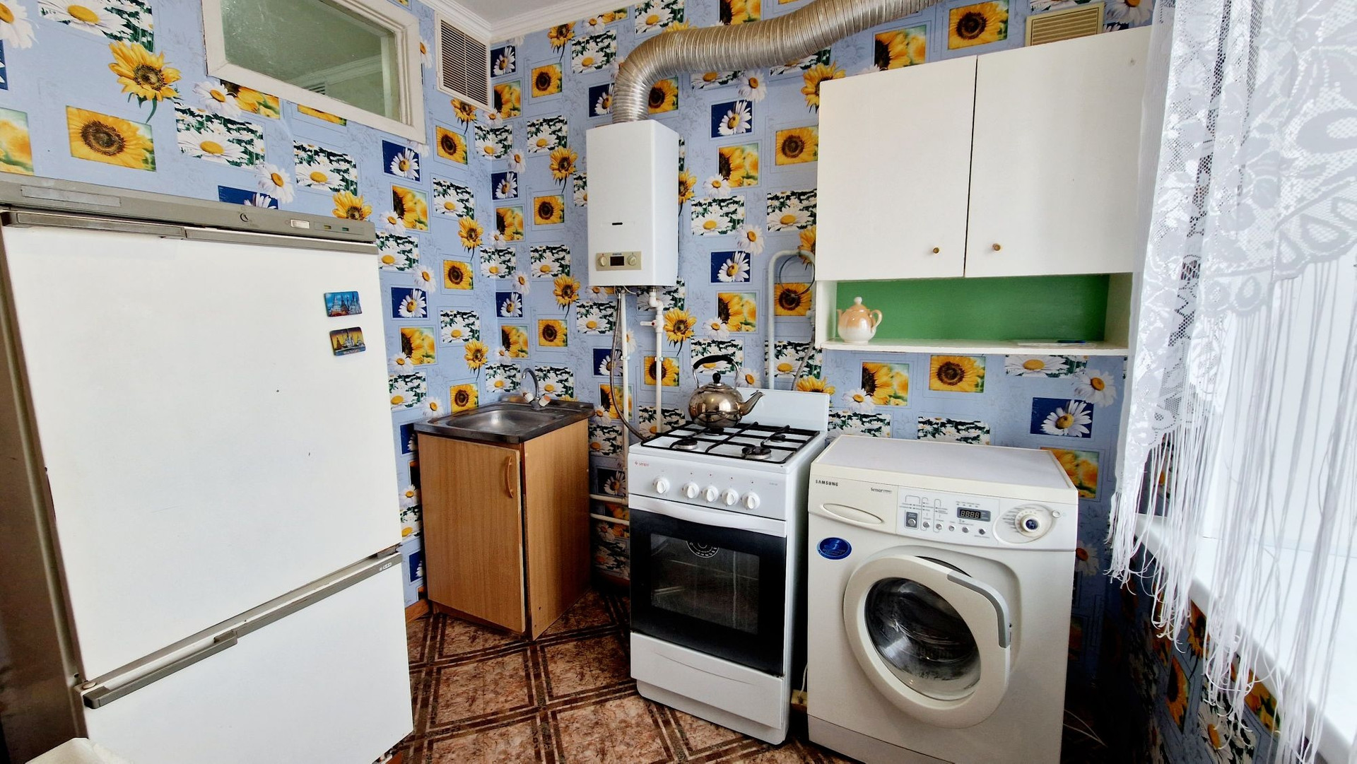 Косметический ремонт: пластиковые окна, линолеум, входная дверь Гардиан, межкомнатные двери заменены, везде выровнены потолки, санузел обшит пластиковыми панелями, газовая колонка-автомат.