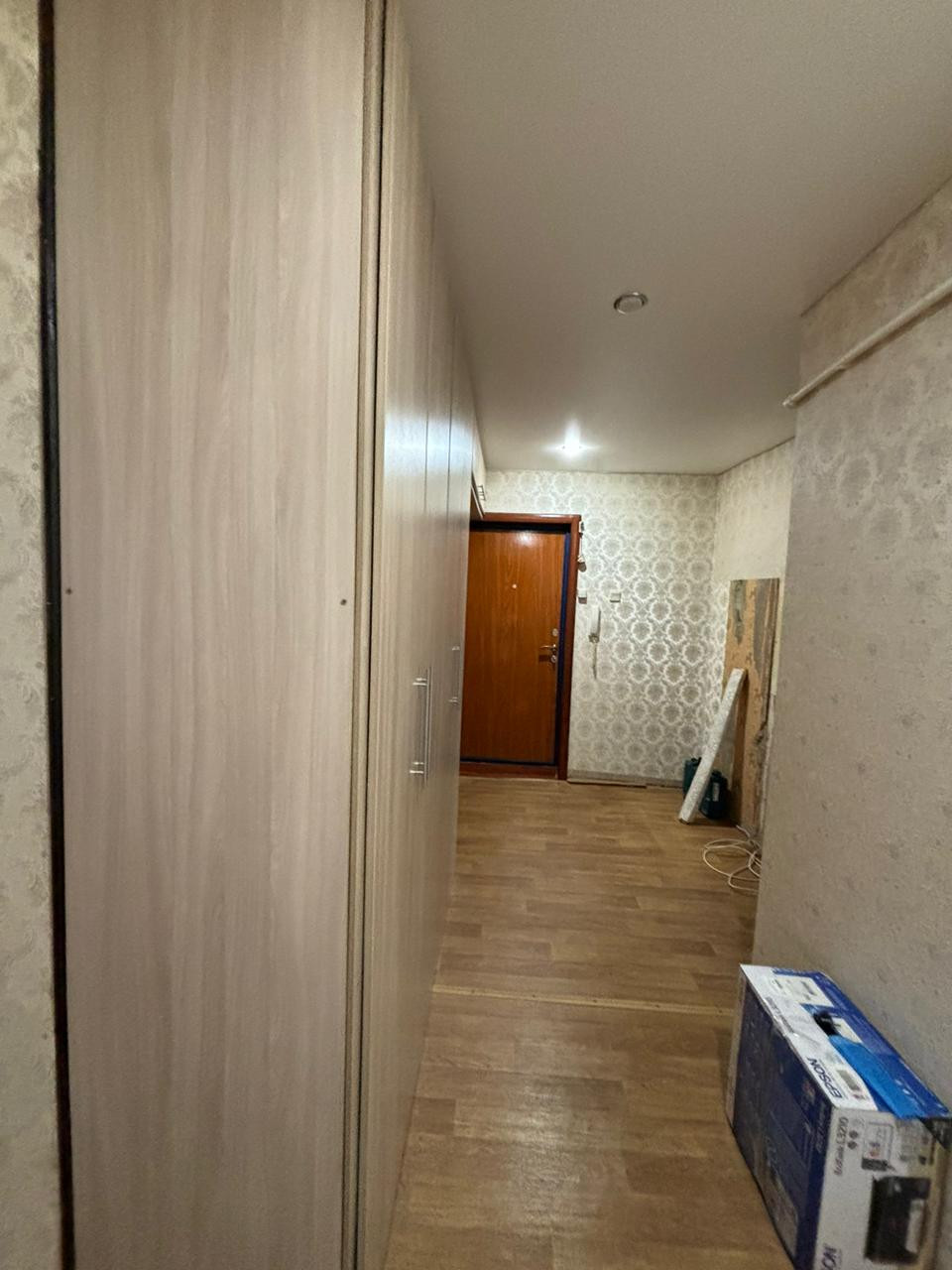 Покупателям остается кухонный гарнитур, большой вместительный шкаф в прихожей, шкаф для одежды в спальной комнате.