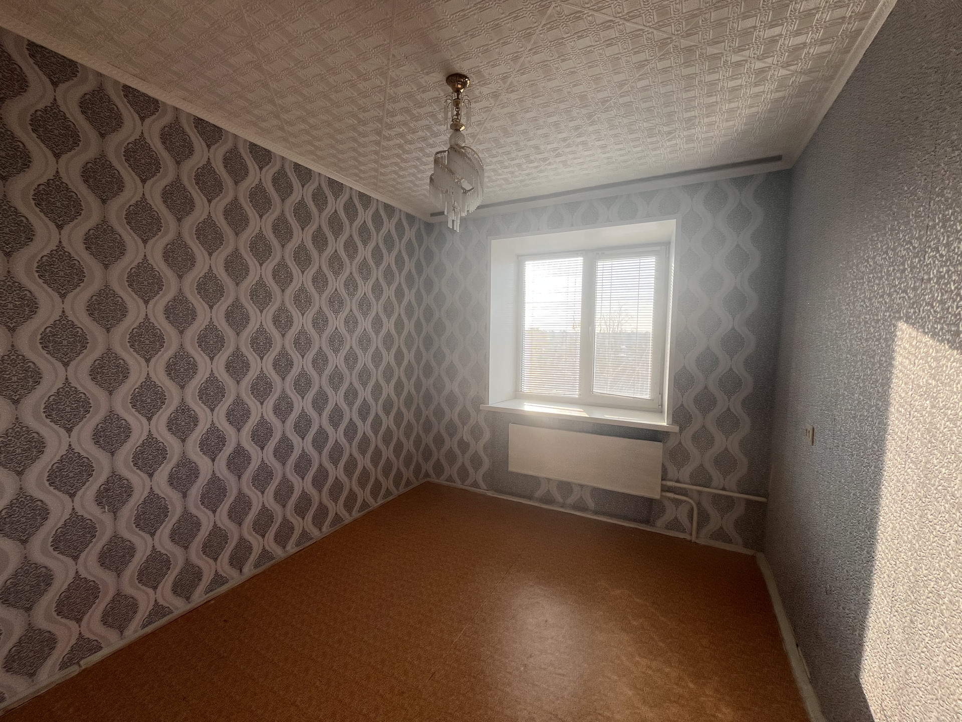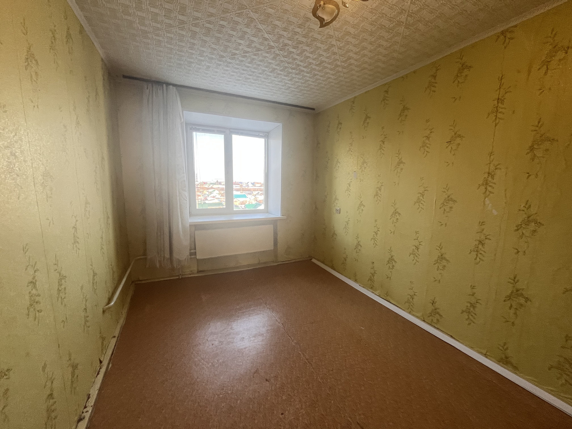 Полы ровный бетон, настелен линолеум.