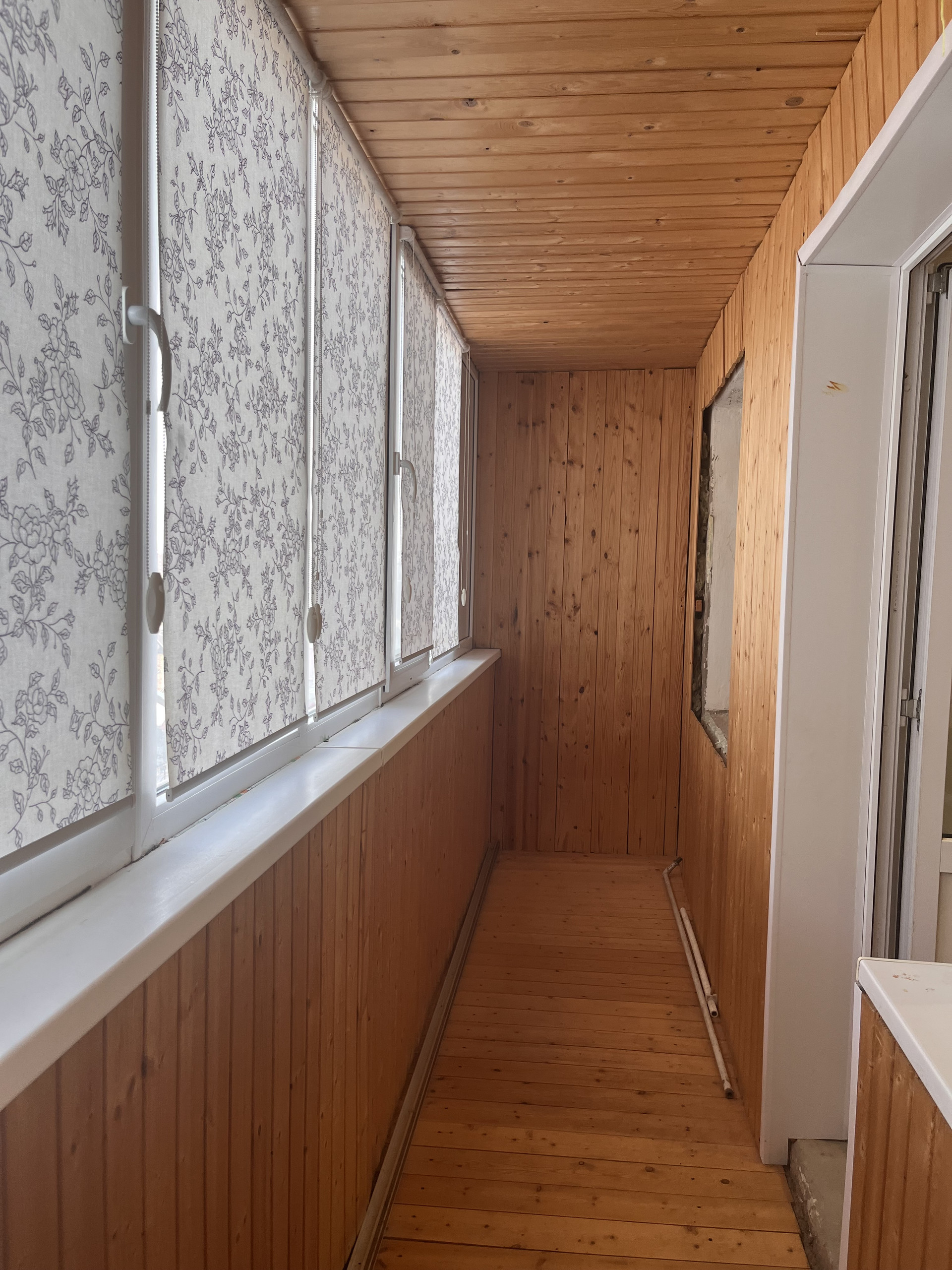 Лоджия обшита вагонкой.