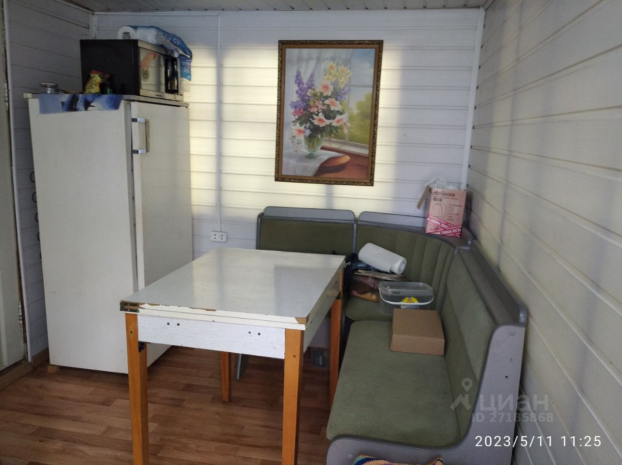 В доме есть спальня, кухня и еще одна комната на чердаке.