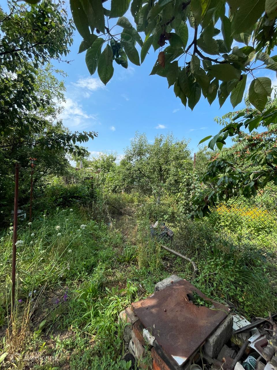 Во дворе растут садовые деревья- яблони, сливы, алыча, вишня ,