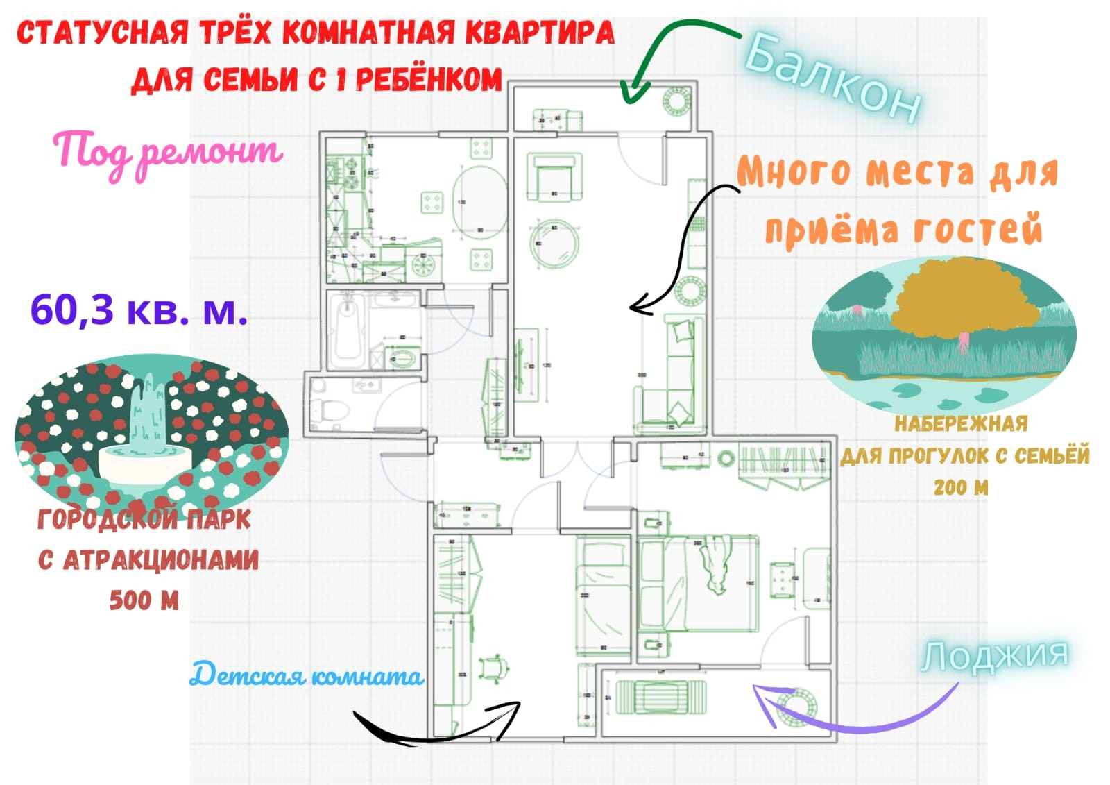 Квартира - 60,3м2