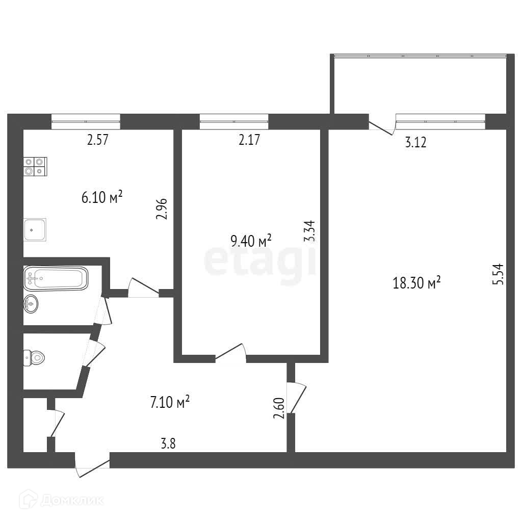 Балкон, лоджия 1 балкон