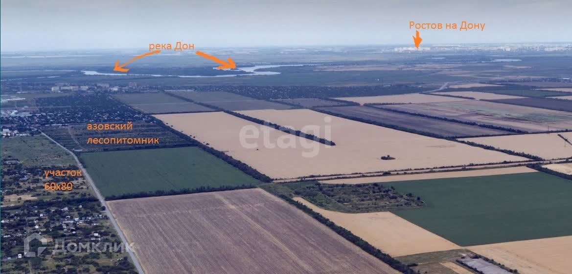 до Ростова-на-Дону 20-30 минут на машине. Также до участка можно добраться по недавно введенному в эксплуатацию современному шоссе Ростов-Азов город Азов. Данный участок отлично подходит для строительства коттеджного поселка.