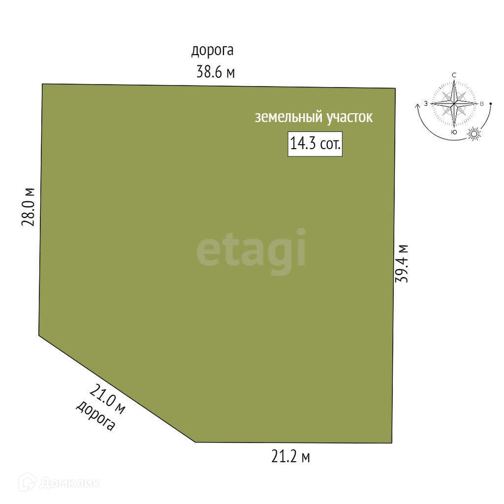 Площадь участка 14.3 сот.