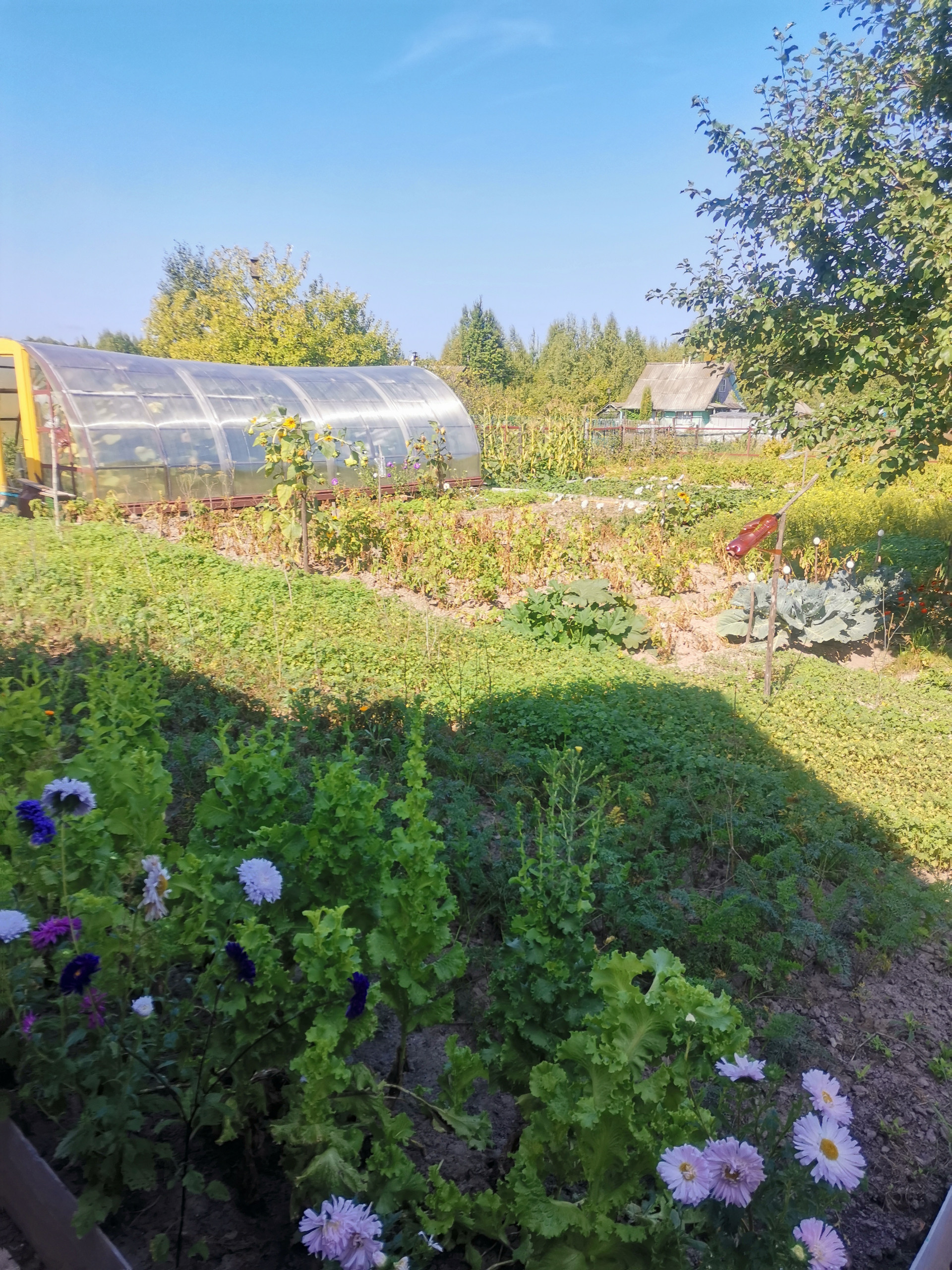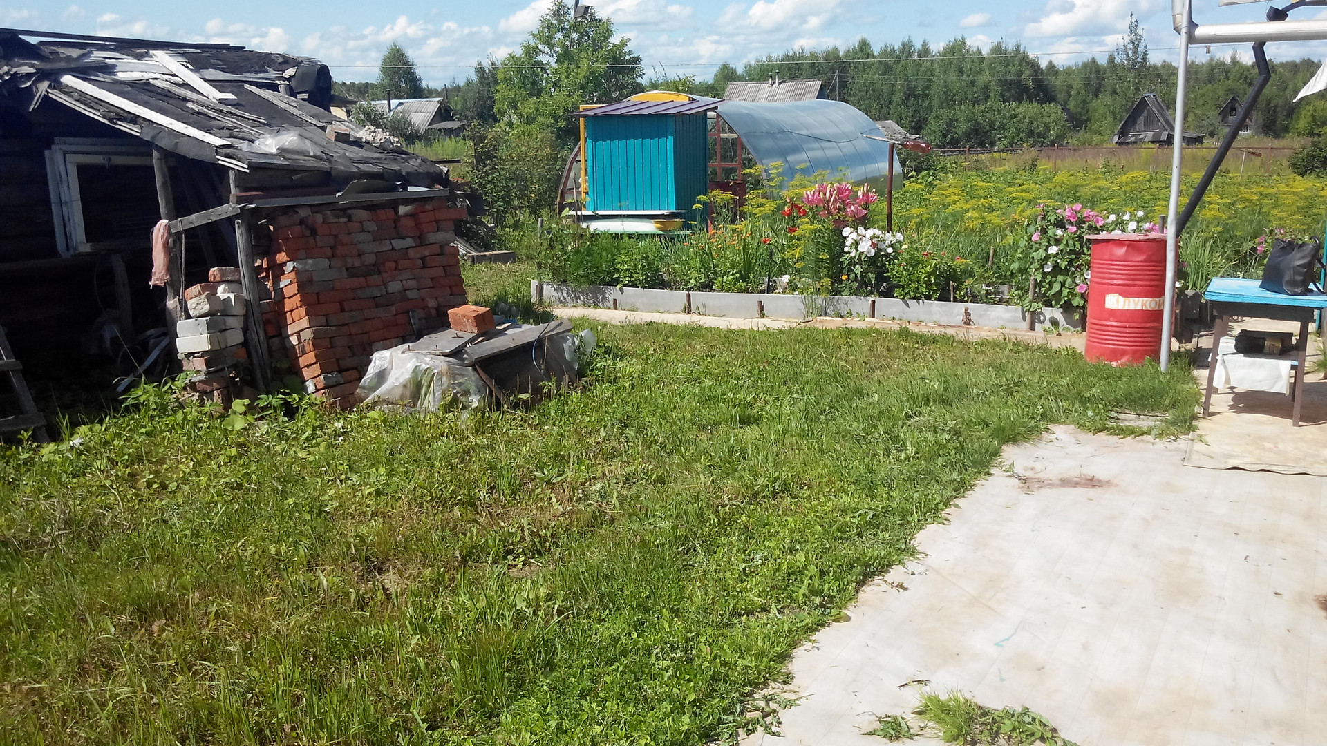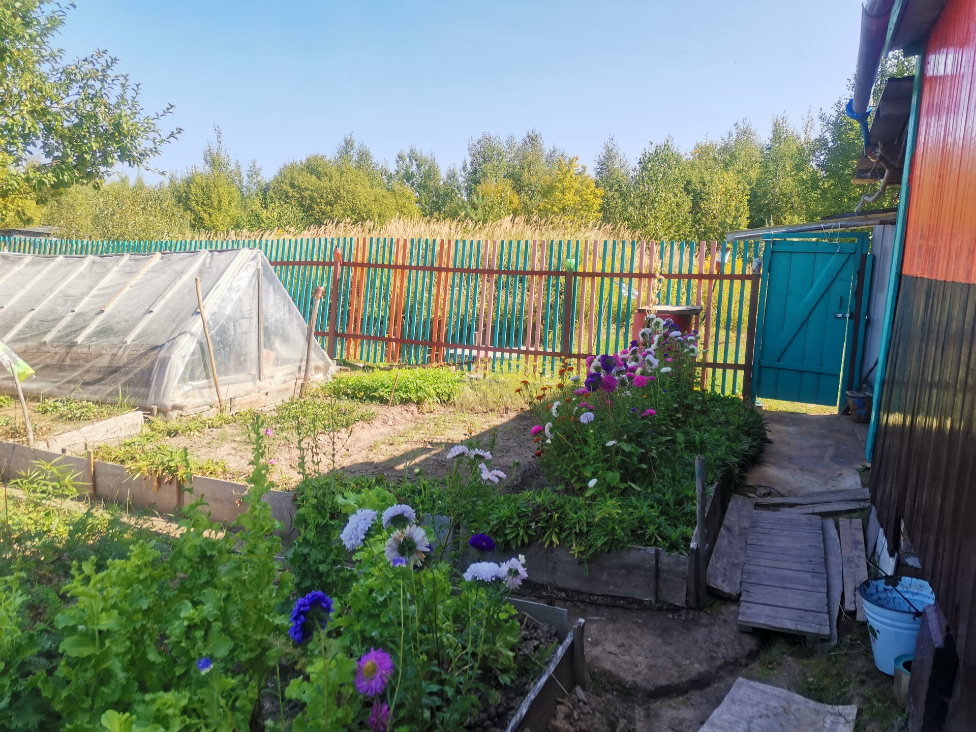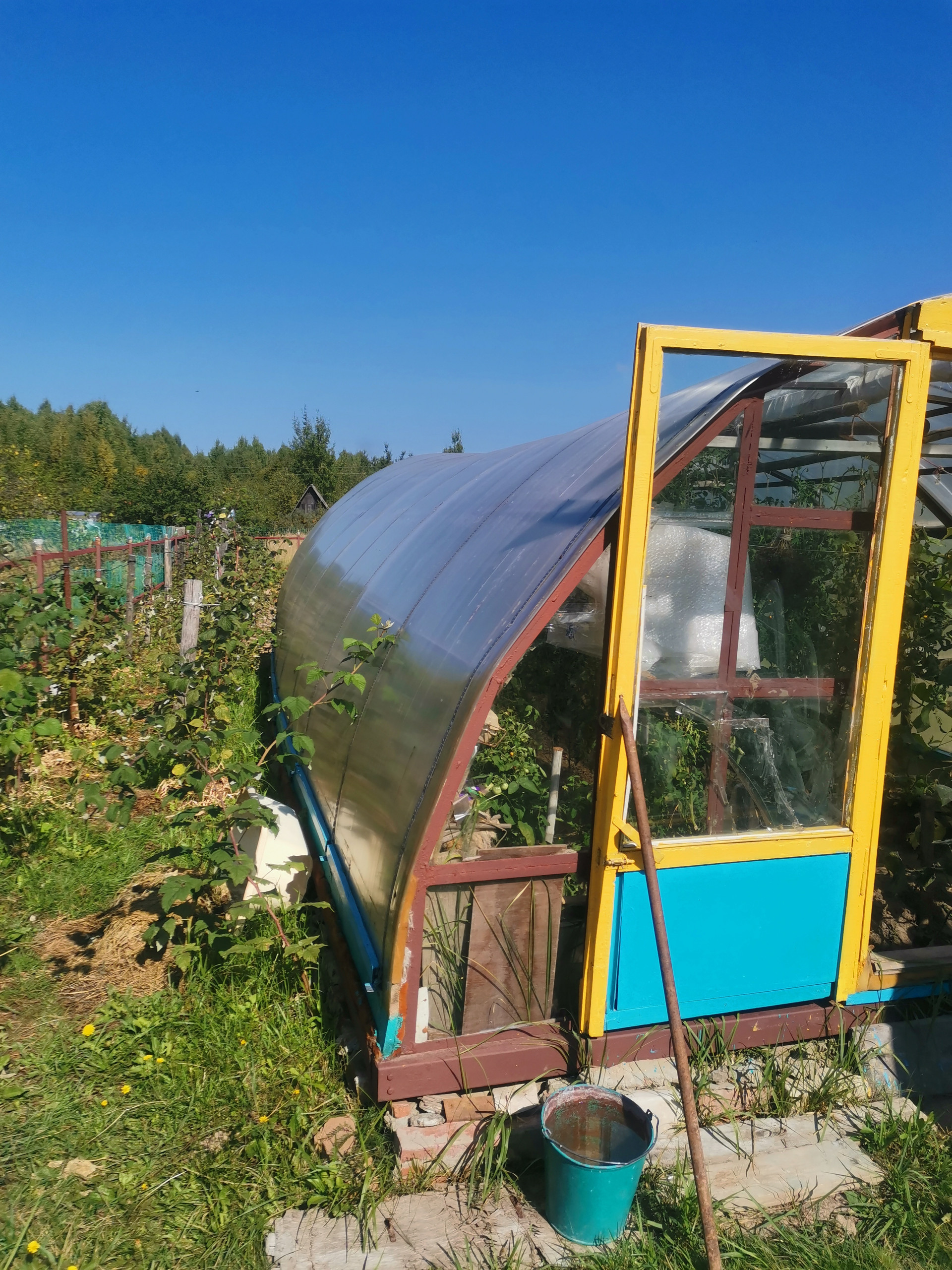 Теплица из поликарбоната 32 м2. Есть вторая небольшая теплица. Земля хорошая, на участке 3 яблони, малина, смородина черная, красная, крыжовник.
