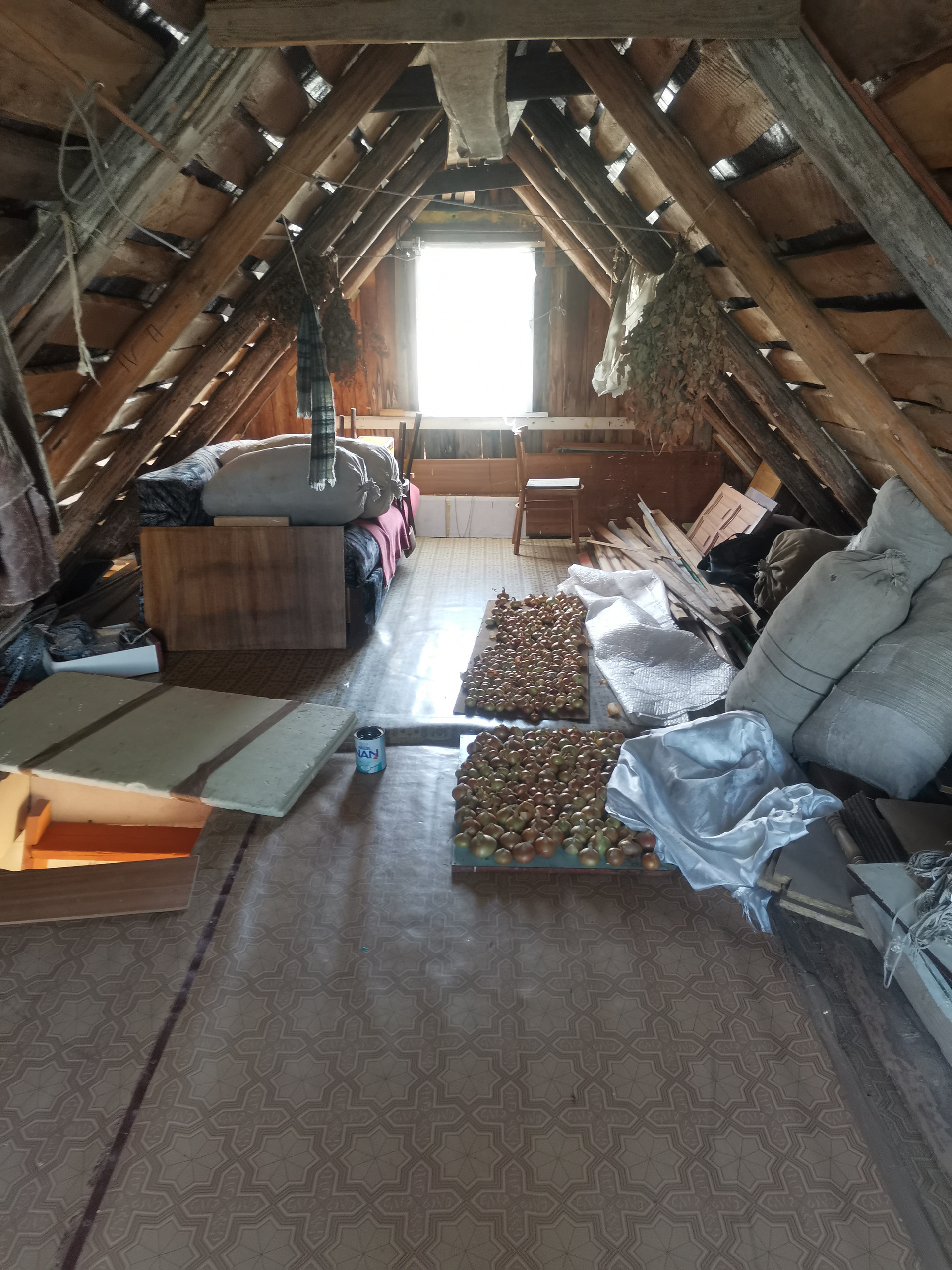 Площадь 1 эт. 35 м2: прихожая, кухня, спальня, подвал. Площадь мансарды 26 м2. Также имеется сарай 12 м2.