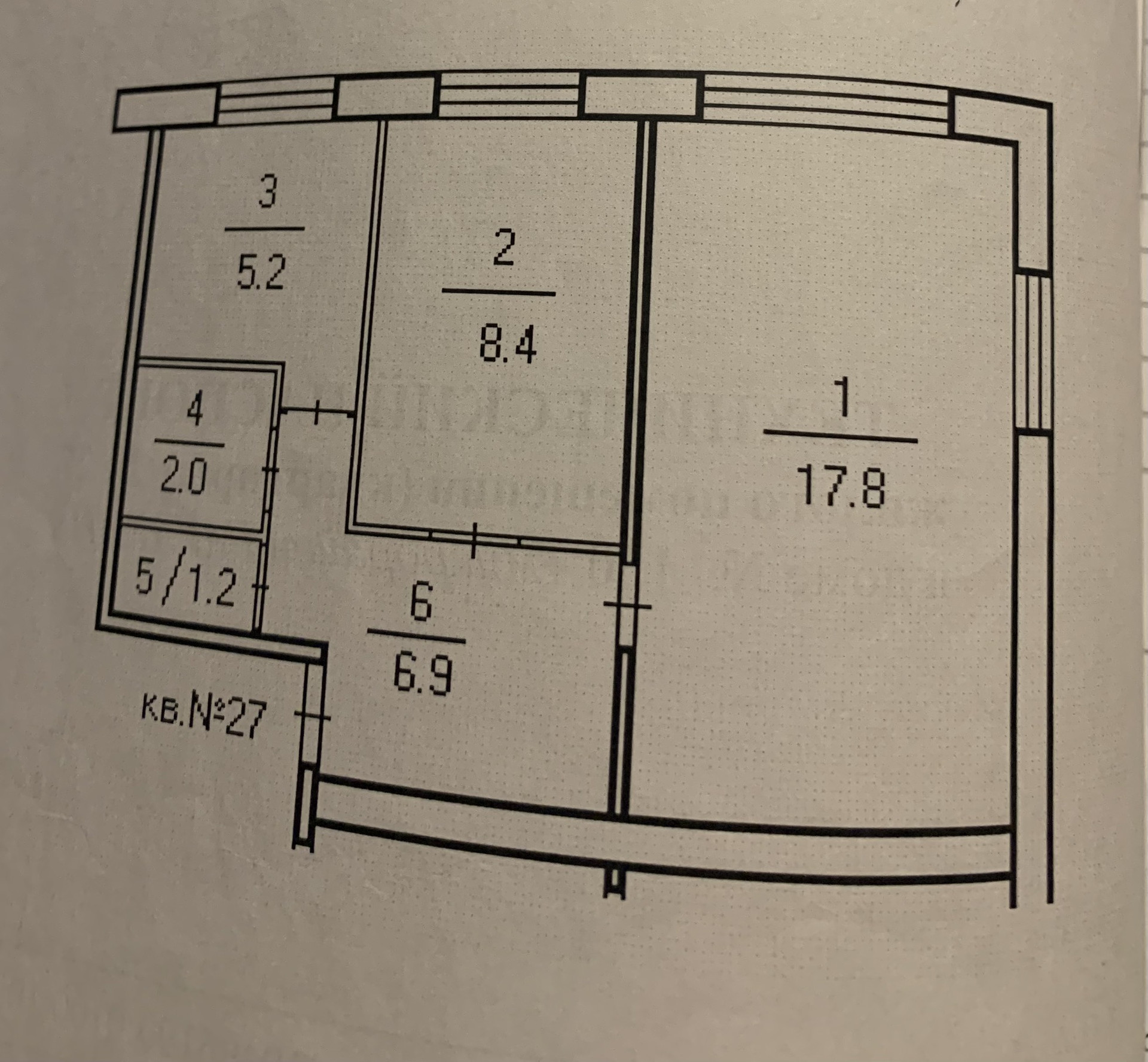 Жилая площадь 26.4 м2