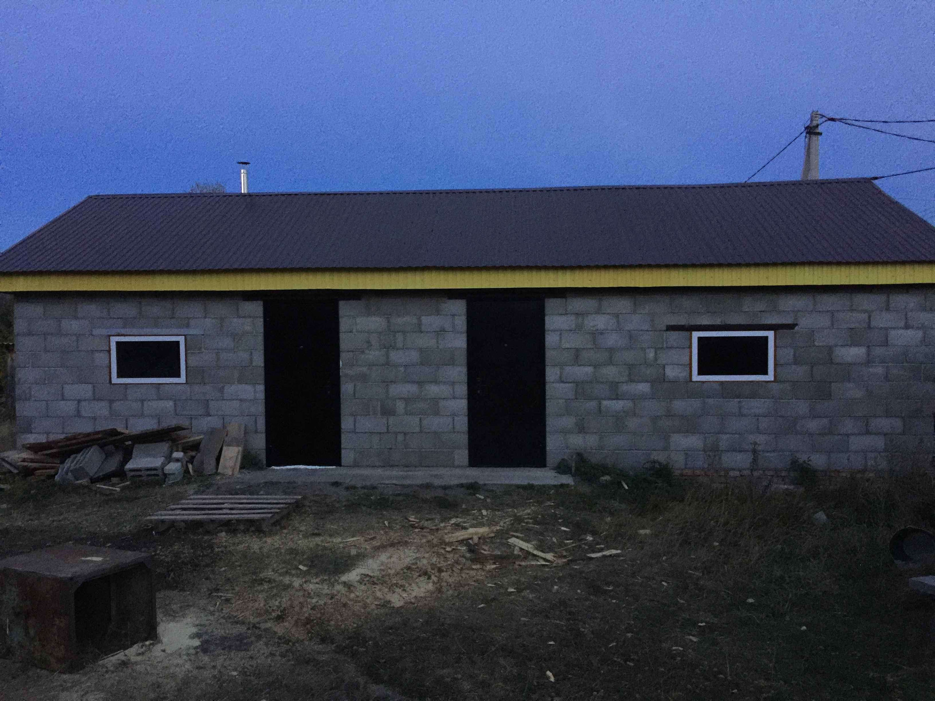На участке имеется сруб сосновый 10х5 под крышей, в наличии евроокна 5 шт. Готовый гараж 4,5х7 из шлакоблока с секционными воротами HORMANN. Готовая баня 4,5х5 из шлакоблока.