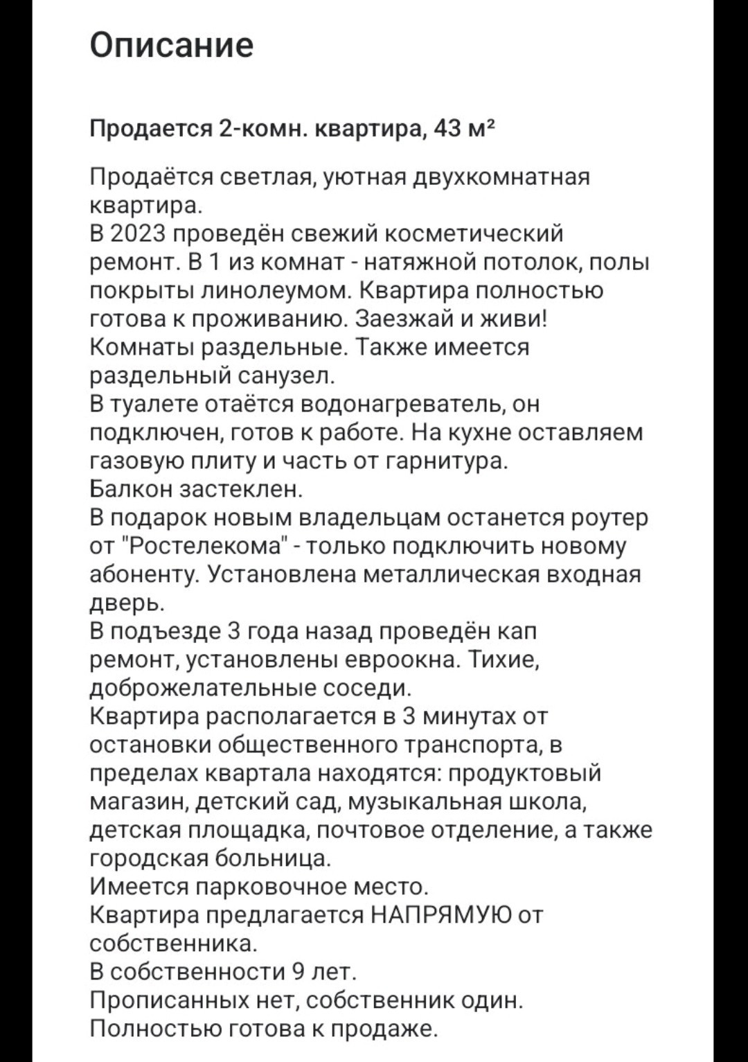 Общая площадь 43 м2